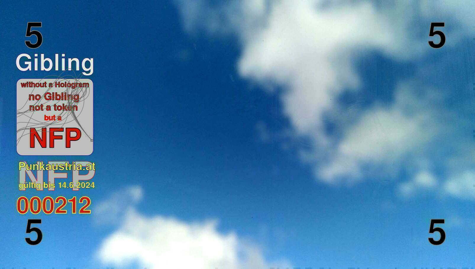 | Caption-Abstract | NFP stays for "Non Fungible Picture". The 11th Edition of our community currency Gibling is built on series of unique pictures. Each image file is unique by serial number and has a own a sha256 checksum. This data is stored in the metatags of the next picture of the series. In the metatags of the first image of the series you can find this text signed in our cryptocurrency Givecoin, created in 2014; NFPs is a fork of the Givecoin blockchain. With the NFPs we extend our ECO system in the context of process art. In this way, the Infolab of the Stadtwerkstatt wants to show another critical position on the logical truths in the new digital information society. The serial number of this image is 000212 and can also be found in the metatag "Original Transmission Reference". The checksum of the previous image is c2dc861bff1137877c77cbd3587b27f7f0ad872227e25e2a856a1b72c60e3597 and is also stored in the metatag: "Edit Status". Your bitcoinaddress: 13Ws19KunraGtSmSz1wSTvWpTZhcykxbKJ. Your Givecoinaddress:Is printed on the back of the Gibling. To keep the process open, visit https://gibling.stwst.at and follow the instructions." |