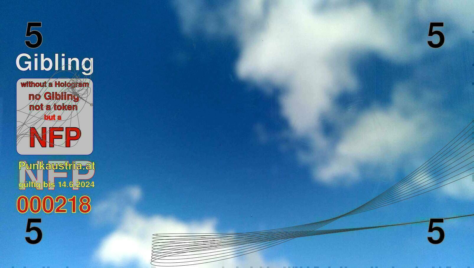 | Caption-Abstract | NFP stays for "Non Fungible Picture". The 11th Edition of our community currency Gibling is built on series of unique pictures. Each image file is unique by serial number and has a own a sha256 checksum. This data is stored in the metatags of the next picture of the series. In the metatags of the first image of the series you can find this text signed in our cryptocurrency Givecoin, created in 2014; NFPs is a fork of the Givecoin blockchain. With the NFPs we extend our ECO system in the context of process art. In this way, the Infolab of the Stadtwerkstatt wants to show another critical position on the logical truths in the new digital information society. The serial number of this image is 000218 and can also be found in the metatag "Original Transmission Reference". The checksum of the previous image is 453ec455c3b6364d4d6dfbf3be62c2353e8247a095a874bf8d14be47ecd2fe58 and is also stored in the metatag: "Edit Status". Your bitcoinaddress: 13awXs8e8fb5MD1gNUa8egpLVrHzheqUVT. Your Givecoinaddress:Is printed on the back of the Gibling. To keep the process open, visit https://gibling.stwst.at and follow the instructions." |