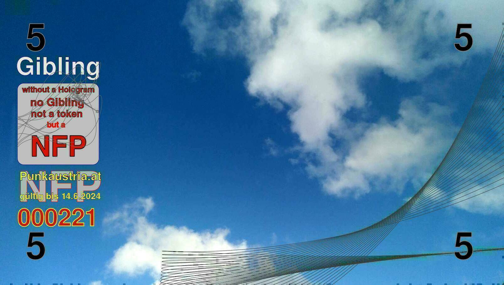 | Caption-Abstract | NFP stays for "Non Fungible Picture". The 11th Edition of our community currency Gibling is built on series of unique pictures. Each image file is unique by serial number and has a own a sha256 checksum. This data is stored in the metatags of the next picture of the series. In the metatags of the first image of the series you can find this text signed in our cryptocurrency Givecoin, created in 2014; NFPs is a fork of the Givecoin blockchain. With the NFPs we extend our ECO system in the context of process art. In this way, the Infolab of the Stadtwerkstatt wants to show another critical position on the logical truths in the new digital information society. The serial number of this image is 000221 and can also be found in the metatag "Original Transmission Reference". The checksum of the previous image is 802a88e29e26c0b1b77c12a55dc6b8a36e140a911f6e6f9c3a0b3a64104d87dc and is also stored in the metatag: "Edit Status". Your bitcoinaddress: 13bqpwp5s29pqAeN2wtHfT4irgf4LvGt2y. Your Givecoinaddress:Is printed on the back of the Gibling. To keep the process open, visit https://gibling.stwst.at and follow the instructions." |