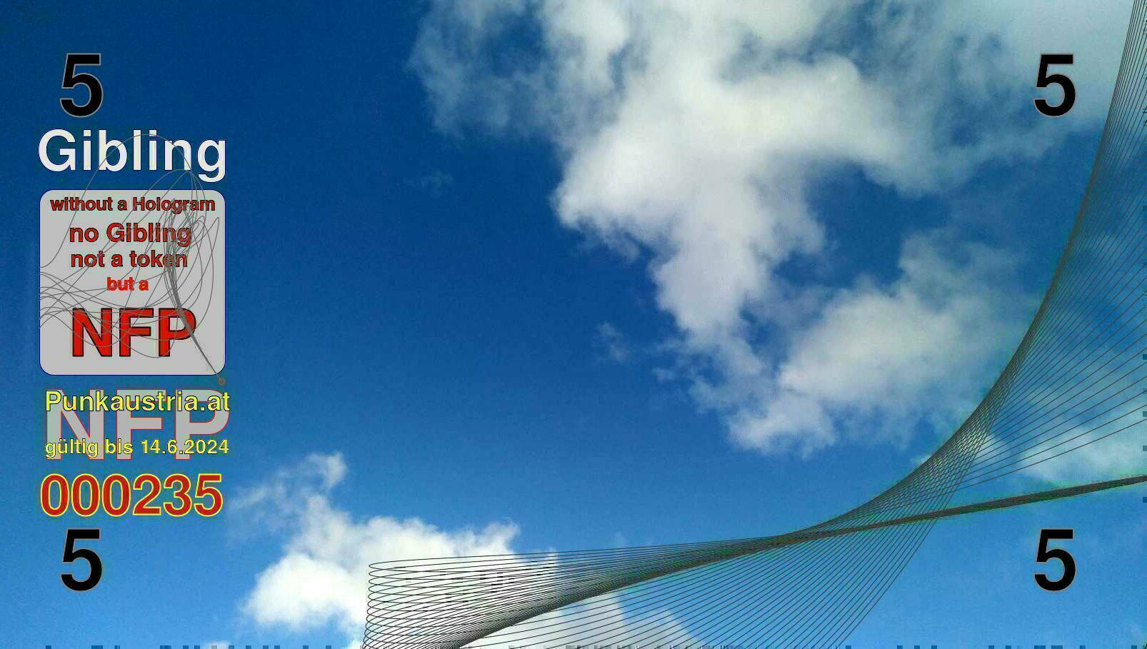| Caption-Abstract | NFP stays for "Non Fungible Picture". The 11th Edition of our community currency Gibling is built on series of unique pictures. Each image file is unique by serial number and has a own a sha256 checksum. This data is stored in the metatags of the next picture of the series. In the metatags of the first image of the series you can find this text signed in our cryptocurrency Givecoin, created in 2014; NFPs is a fork of the Givecoin blockchain. With the NFPs we extend our ECO system in the context of process art. In this way, the Infolab of the Stadtwerkstatt wants to show another critical position on the logical truths in the new digital information society. The serial number of this image is 000235 and can also be found in the metatag "Original Transmission Reference". The checksum of the previous image is 8c47ccc0c1565289d3884e1445a93bbf8bb9ba8aeb84cfcdb5314cccea338646 and is also stored in the metatag: "Edit Status". Your bitcoinaddress: 13wpFxAMwZezxRrz8VEsNBYddrgVyyugFu. Your Givecoinaddress:Is printed on the back of the Gibling. To keep the process open, visit https://gibling.stwst.at and follow the instructions." |