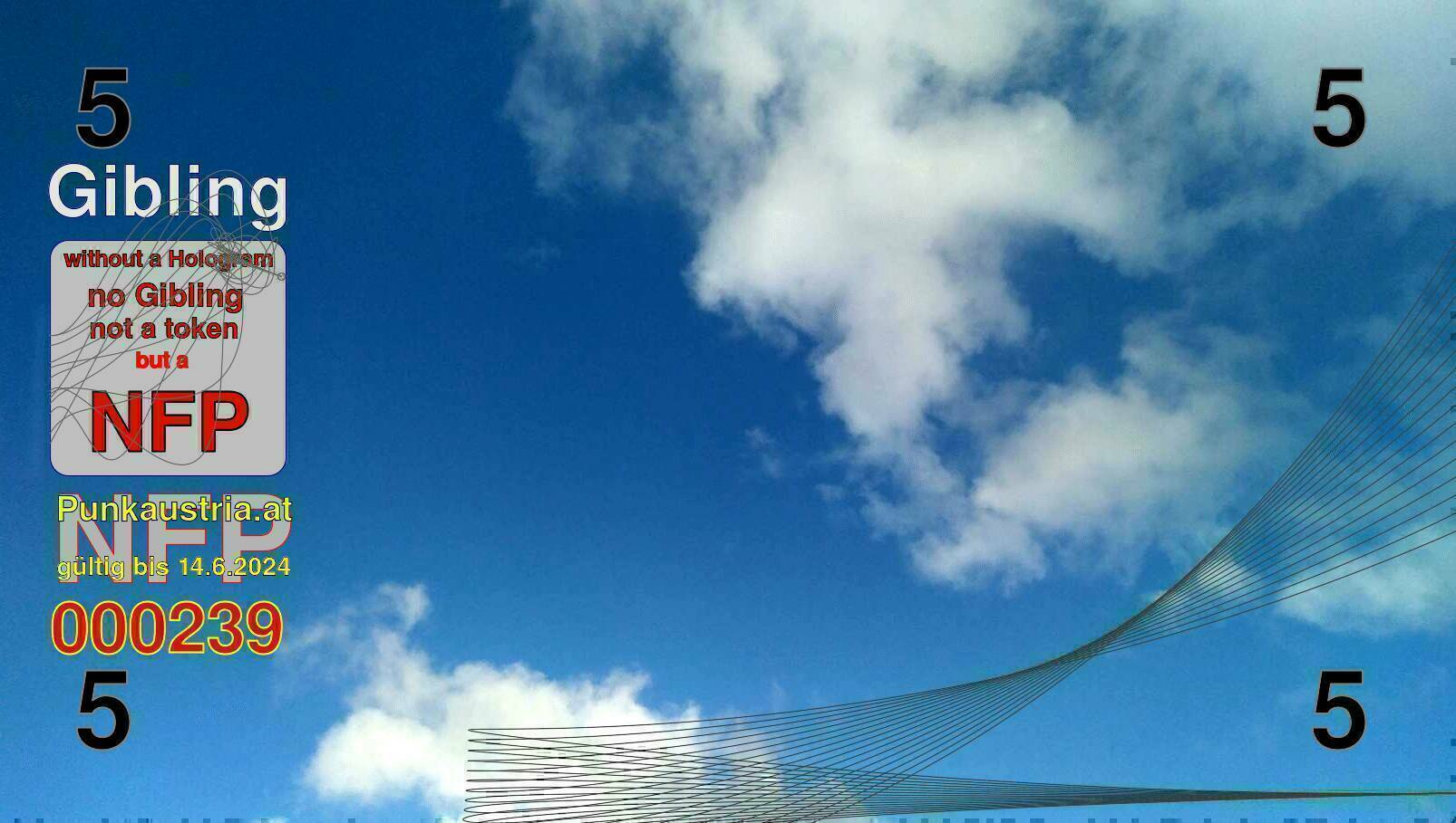 | Caption-Abstract | NFP stays for "Non Fungible Picture". The 11th Edition of our community currency Gibling is built on series of unique pictures. Each image file is unique by serial number and has a own a sha256 checksum. This data is stored in the metatags of the next picture of the series. In the metatags of the first image of the series you can find this text signed in our cryptocurrency Givecoin, created in 2014; NFPs is a fork of the Givecoin blockchain. With the NFPs we extend our ECO system in the context of process art. In this way, the Infolab of the Stadtwerkstatt wants to show another critical position on the logical truths in the new digital information society. The serial number of this image is 000239 and can also be found in the metatag "Original Transmission Reference". The checksum of the previous image is 78d7bc4c2ff0c63ac6c37c20bb5ddeb71ddedea4e207ad4c4b3a2fb35d755025 and is also stored in the metatag: "Edit Status". Your bitcoinaddress: 13yfid9vCyGsoseLRaA8Ec19uxgguBovnc. Your Givecoinaddress:Is printed on the back of the Gibling. To keep the process open, visit https://gibling.stwst.at and follow the instructions." |