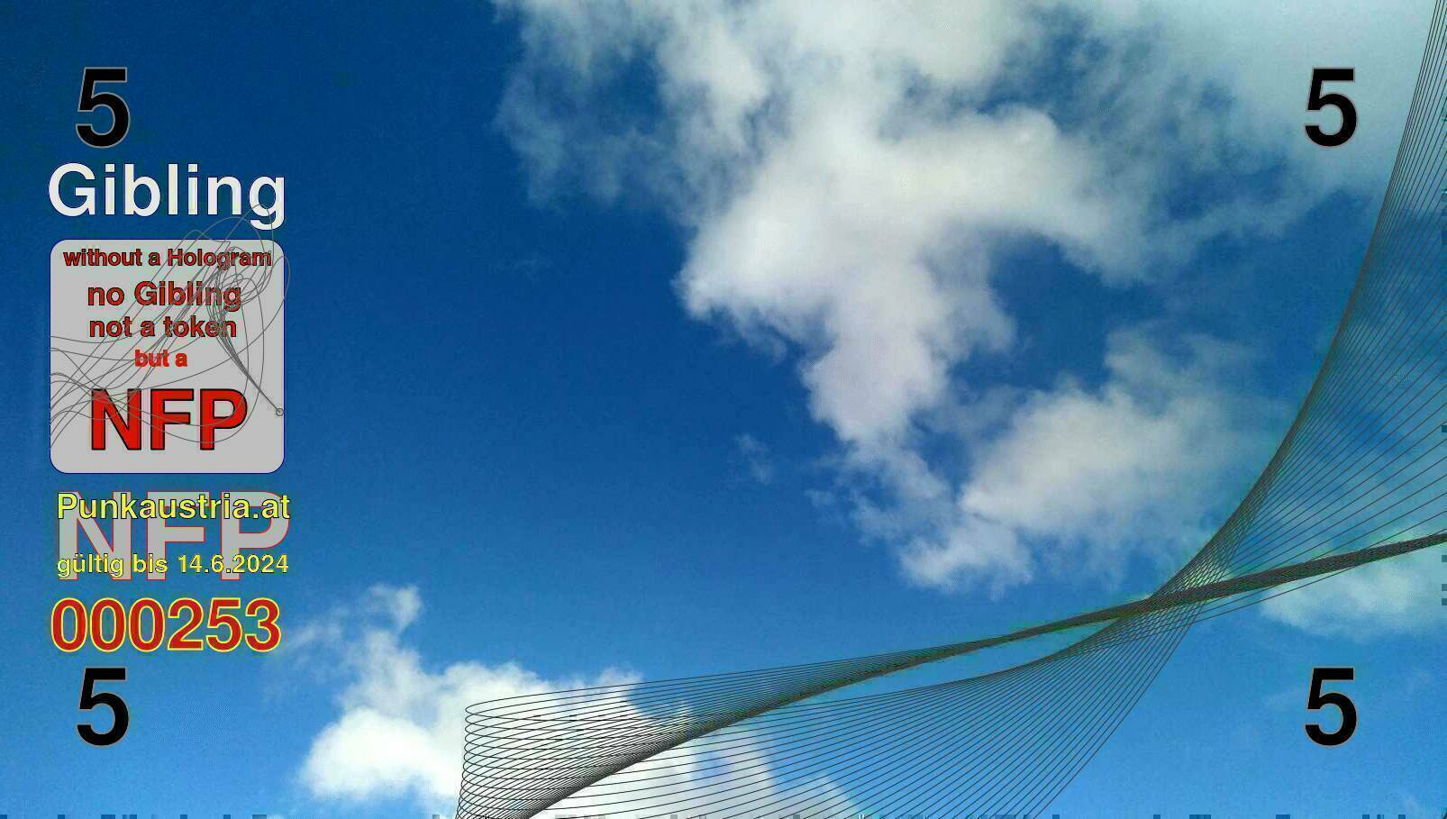 | Caption-Abstract | NFP stays for "Non Fungible Picture". The 11th Edition of our community currency Gibling is built on series of unique pictures. Each image file is unique by serial number and has a own a sha256 checksum. This data is stored in the metatags of the next picture of the series. In the metatags of the first image of the series you can find this text signed in our cryptocurrency Givecoin, created in 2014; NFPs is a fork of the Givecoin blockchain. With the NFPs we extend our ECO system in the context of process art. In this way, the Infolab of the Stadtwerkstatt wants to show another critical position on the logical truths in the new digital information society. The serial number of this image is 000253 and can also be found in the metatag "Original Transmission Reference". The checksum of the previous image is f6cf29c2520211c6525a2ccb29ff7fecc65c9ec3fca0041dd8e63b08eb01fd10 and is also stored in the metatag: "Edit Status". Your bitcoinaddress: 148i2Un9zbzDmg12xKrSDWMLYGESNtA59G. Your Givecoinaddress:Is printed on the back of the Gibling. To keep the process open, visit https://gibling.stwst.at and follow the instructions." |