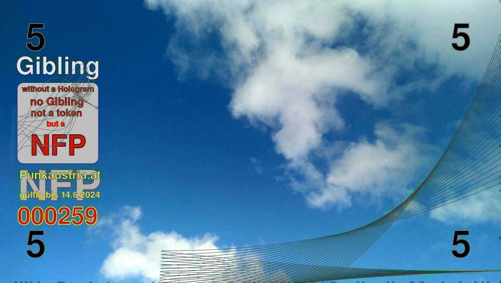| Caption-Abstract | NFP stays for "Non Fungible Picture". The 11th Edition of our community currency Gibling is built on series of unique pictures. Each image file is unique by serial number and has a own a sha256 checksum. This data is stored in the metatags of the next picture of the series. In the metatags of the first image of the series you can find this text signed in our cryptocurrency Givecoin, created in 2014; NFPs is a fork of the Givecoin blockchain. With the NFPs we extend our ECO system in the context of process art. In this way, the Infolab of the Stadtwerkstatt wants to show another critical position on the logical truths in the new digital information society. The serial number of this image is 000259 and can also be found in the metatag "Original Transmission Reference". The checksum of the previous image is 9589e28557bf9e6088dfe49f72483b9a6c29bbd43833381d0075c76001db0197 and is also stored in the metatag: "Edit Status". Your bitcoinaddress: 14ATyvYz7LsZf1NDj4cpvKcfWoP2ZyaWBY. Your Givecoinaddress:Is printed on the back of the Gibling. To keep the process open, visit https://gibling.stwst.at and follow the instructions." |