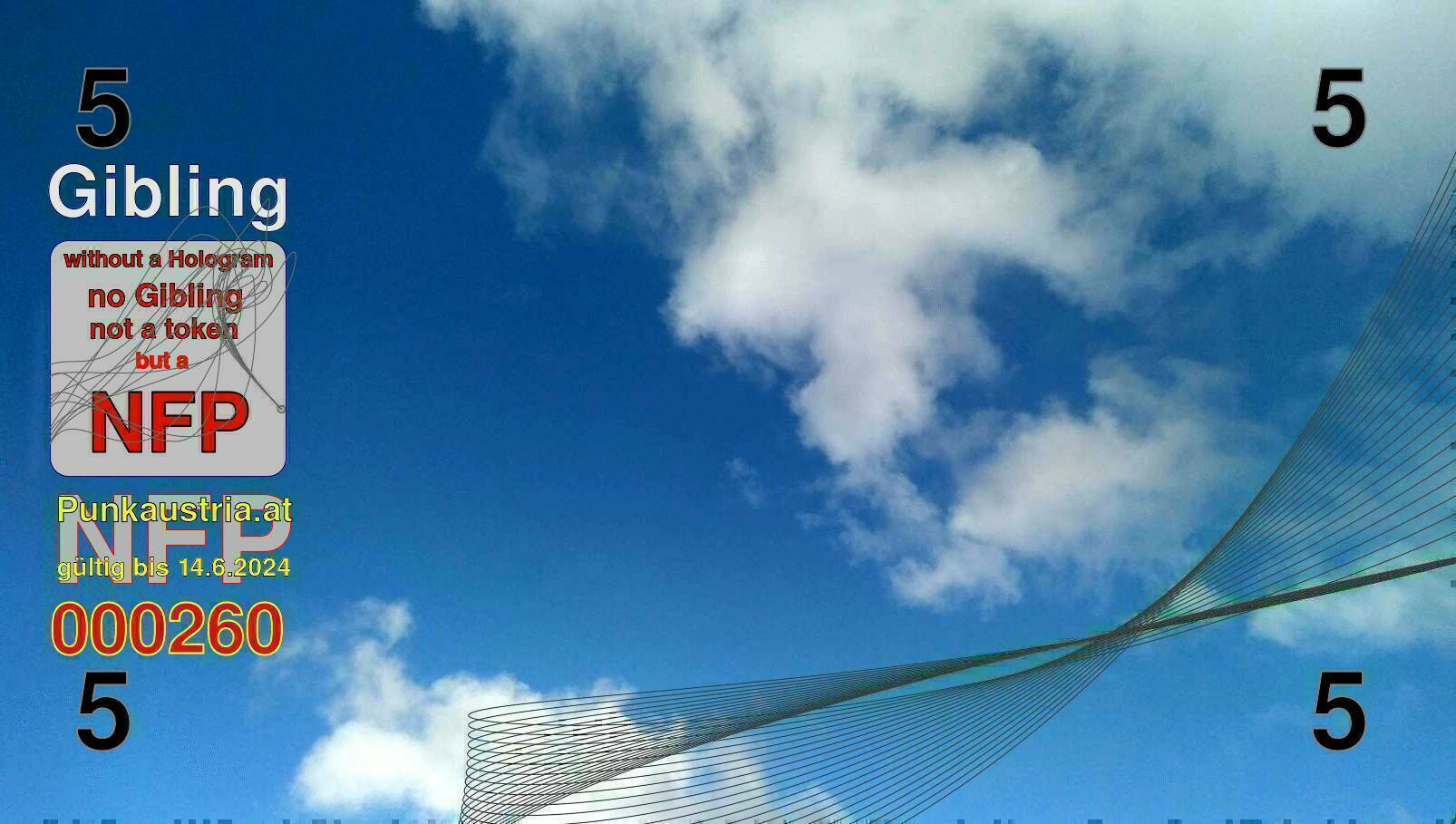 | Caption-Abstract | NFP stays for "Non Fungible Picture". The 11th Edition of our community currency Gibling is built on series of unique pictures. Each image file is unique by serial number and has a own a sha256 checksum. This data is stored in the metatags of the next picture of the series. In the metatags of the first image of the series you can find this text signed in our cryptocurrency Givecoin, created in 2014; NFPs is a fork of the Givecoin blockchain. With the NFPs we extend our ECO system in the context of process art. In this way, the Infolab of the Stadtwerkstatt wants to show another critical position on the logical truths in the new digital information society. The serial number of this image is 000260 and can also be found in the metatag "Original Transmission Reference". The checksum of the previous image is 774f6a705bf153f709746970862d72220001eca766979f2d97c1a506cb16e31a and is also stored in the metatag: "Edit Status". Your bitcoinaddress: 14AuWr4UddwM5TknUMCPb2QpzBf8BKzVaz. Your Givecoinaddress:Is printed on the back of the Gibling. To keep the process open, visit https://gibling.stwst.at and follow the instructions." |