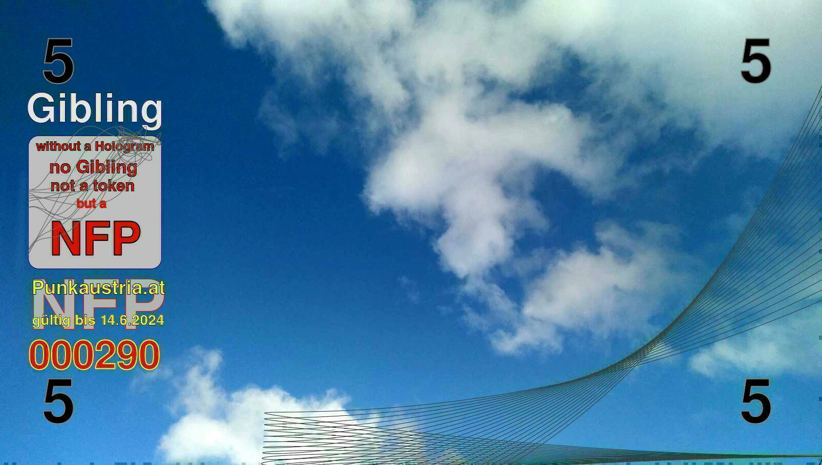 | Caption-Abstract | NFP stays for "Non Fungible Picture". The 11th Edition of our community currency Gibling is built on series of unique pictures. Each image file is unique by serial number and has a own a sha256 checksum. This data is stored in the metatags of the next picture of the series. In the metatags of the first image of the series you can find this text signed in our cryptocurrency Givecoin, created in 2014; NFPs is a fork of the Givecoin blockchain. With the NFPs we extend our ECO system in the context of process art. In this way, the Infolab of the Stadtwerkstatt wants to show another critical position on the logical truths in the new digital information society. The serial number of this image is 000290 and can also be found in the metatag "Original Transmission Reference". The checksum of the previous image is 48d5e5b71a2b8f20302de065980d14b87d9affd9aaa00480e3df9b309d0f91b6 and is also stored in the metatag: "Edit Status". Your bitcoinaddress: 14XkiSEW9BoXh9B27Hy7iZfzzvGEH3GV83. Your Givecoinaddress:Is printed on the back of the Gibling. To keep the process open, visit https://gibling.stwst.at and follow the instructions." |
