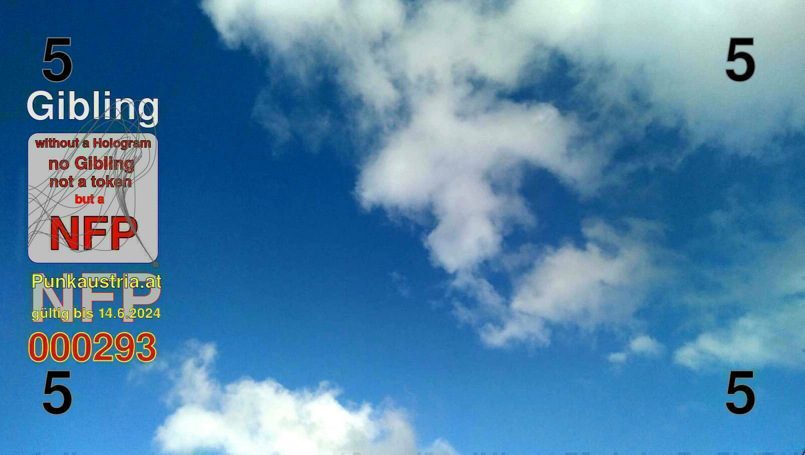 | Caption-Abstract | NFP stays for "Non Fungible Picture". The 11th Edition of our community currency Gibling is built on series of unique pictures. Each image file is unique by serial number and has a own a sha256 checksum. This data is stored in the metatags of the next picture of the series. In the metatags of the first image of the series you can find this text signed in our cryptocurrency Givecoin, created in 2014; NFPs is a fork of the Givecoin blockchain. With the NFPs we extend our ECO system in the context of process art. In this way, the Infolab of the Stadtwerkstatt wants to show another critical position on the logical truths in the new digital information society. The serial number of this image is 000293 and can also be found in the metatag "Original Transmission Reference". The checksum of the previous image is 921878d938382e0017189b86068d77f726feaa89c5dba27e415d8f1ae2b96102 and is also stored in the metatag: "Edit Status". Your bitcoinaddress: 14Z6FLf9d1q3SToDgKFX2kn6kFCNJMTjJT. Your Givecoinaddress:Is printed on the back of the Gibling. To keep the process open, visit https://gibling.stwst.at and follow the instructions." |