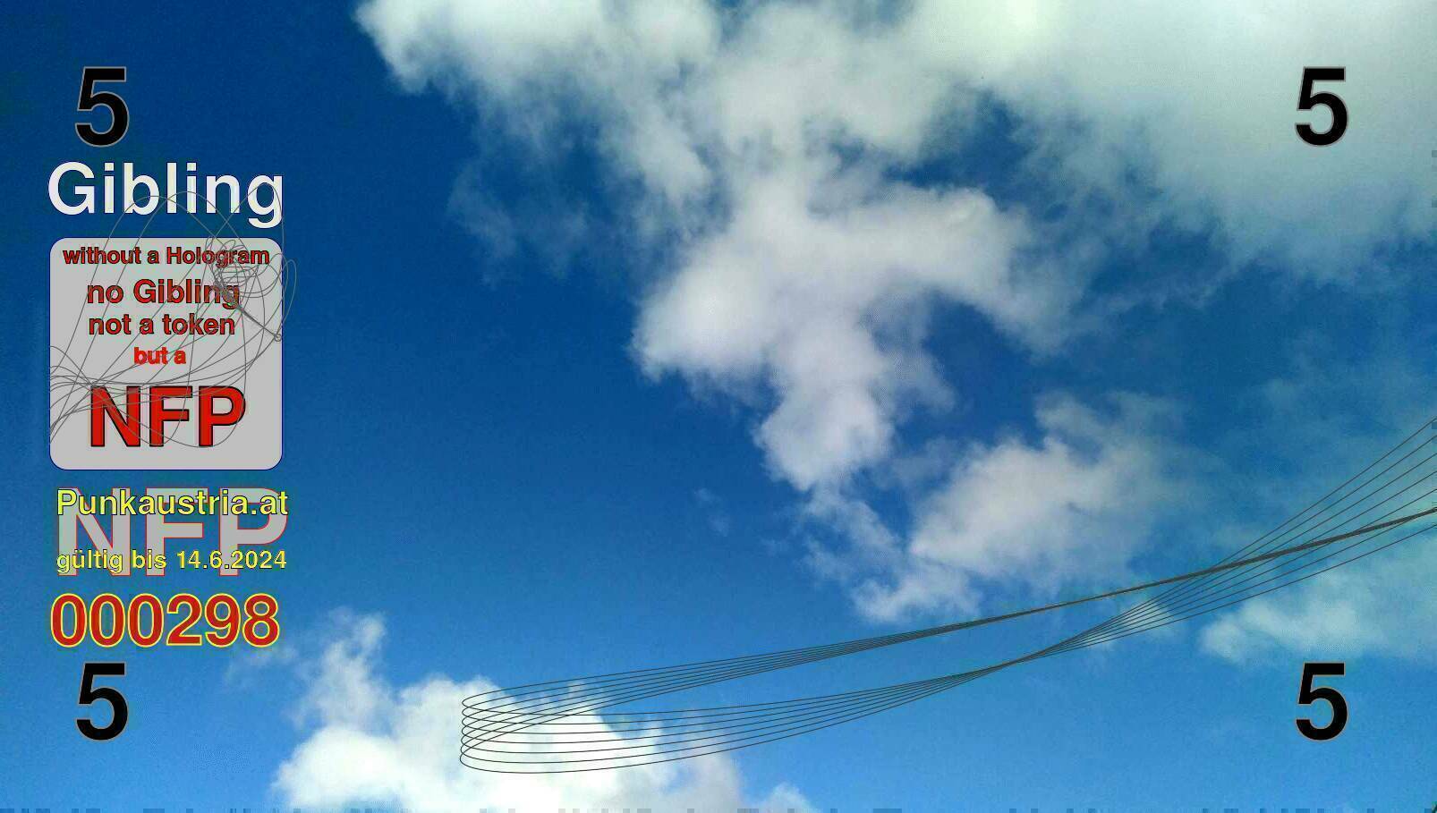 | Caption-Abstract | NFP stays for "Non Fungible Picture". The 11th Edition of our community currency Gibling is built on series of unique pictures. Each image file is unique by serial number and has a own a sha256 checksum. This data is stored in the metatags of the next picture of the series. In the metatags of the first image of the series you can find this text signed in our cryptocurrency Givecoin, created in 2014; NFPs is a fork of the Givecoin blockchain. With the NFPs we extend our ECO system in the context of process art. In this way, the Infolab of the Stadtwerkstatt wants to show another critical position on the logical truths in the new digital information society. The serial number of this image is 000298 and can also be found in the metatag "Original Transmission Reference". The checksum of the previous image is 4e6d09fcb4095dfe34df41f064e70b1fde06ca14e803aa4ab305f9748093e8c9 and is also stored in the metatag: "Edit Status". Your bitcoinaddress: 14b9x5fHWhWeHxGiQuZQwBsM4XMEUK5Yox. Your Givecoinaddress:Is printed on the back of the Gibling. To keep the process open, visit https://gibling.stwst.at and follow the instructions." |