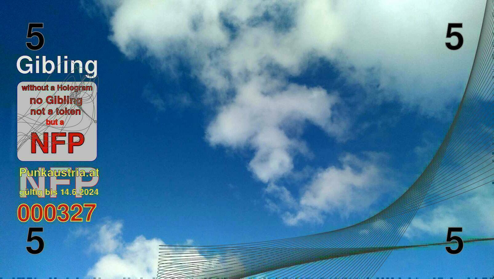 | Caption-Abstract | NFP stays for "Non Fungible Picture". The 11th Edition of our community currency Gibling is built on series of unique pictures. Each image file is unique by serial number and has a own a sha256 checksum. This data is stored in the metatags of the next picture of the series. In the metatags of the first image of the series you can find this text signed in our cryptocurrency Givecoin, created in 2014; NFPs is a fork of the Givecoin blockchain. With the NFPs we extend our ECO system in the context of process art. In this way, the Infolab of the Stadtwerkstatt wants to show another critical position on the logical truths in the new digital information society. The serial number of this image is 000327 and can also be found in the metatag "Original Transmission Reference". The checksum of the previous image is 1523617cbd93983666e44a1df51000da1033abd115b678081966713fa7ed0744 and is also stored in the metatag: "Edit Status". Your bitcoinaddress: 153tyZVWigcZi9CXUGd9EHfkiZSqUSnxY4. Your Givecoinaddress:Is printed on the back of the Gibling. To keep the process open, visit https://gibling.stwst.at and follow the instructions." |
