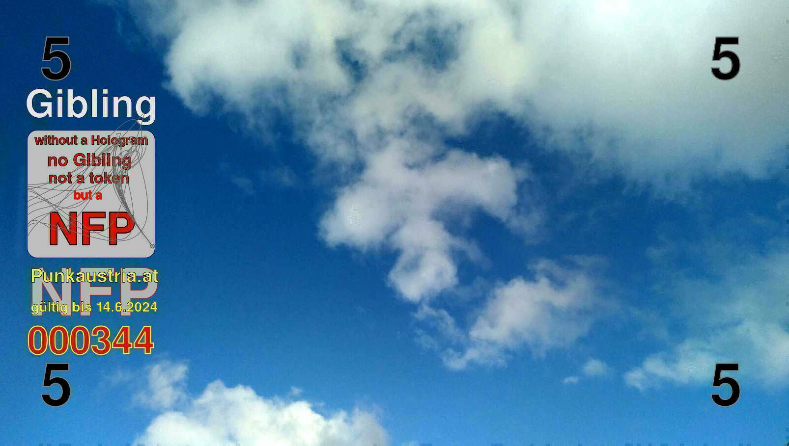 | Caption-Abstract | NFP stays for "Non Fungible Picture". The 11th Edition of our community currency Gibling is built on series of unique pictures. Each image file is unique by serial number and has a own a sha256 checksum. This data is stored in the metatags of the next picture of the series. In the metatags of the first image of the series you can find this text signed in our cryptocurrency Givecoin, created in 2014; NFPs is a fork of the Givecoin blockchain. With the NFPs we extend our ECO system in the context of process art. In this way, the Infolab of the Stadtwerkstatt wants to show another critical position on the logical truths in the new digital information society. The serial number of this image is 000344 and can also be found in the metatag "Original Transmission Reference". The checksum of the previous image is 9615776543311560392584b98bca165bd9ff43d693883e6fc9260232f2c86648 and is also stored in the metatag: "Edit Status". Your bitcoinaddress: 159tEZGvNA62vomJiD54fzEiyBzrbhmgVq. Your Givecoinaddress:Is printed on the back of the Gibling. To keep the process open, visit https://gibling.stwst.at and follow the instructions." |