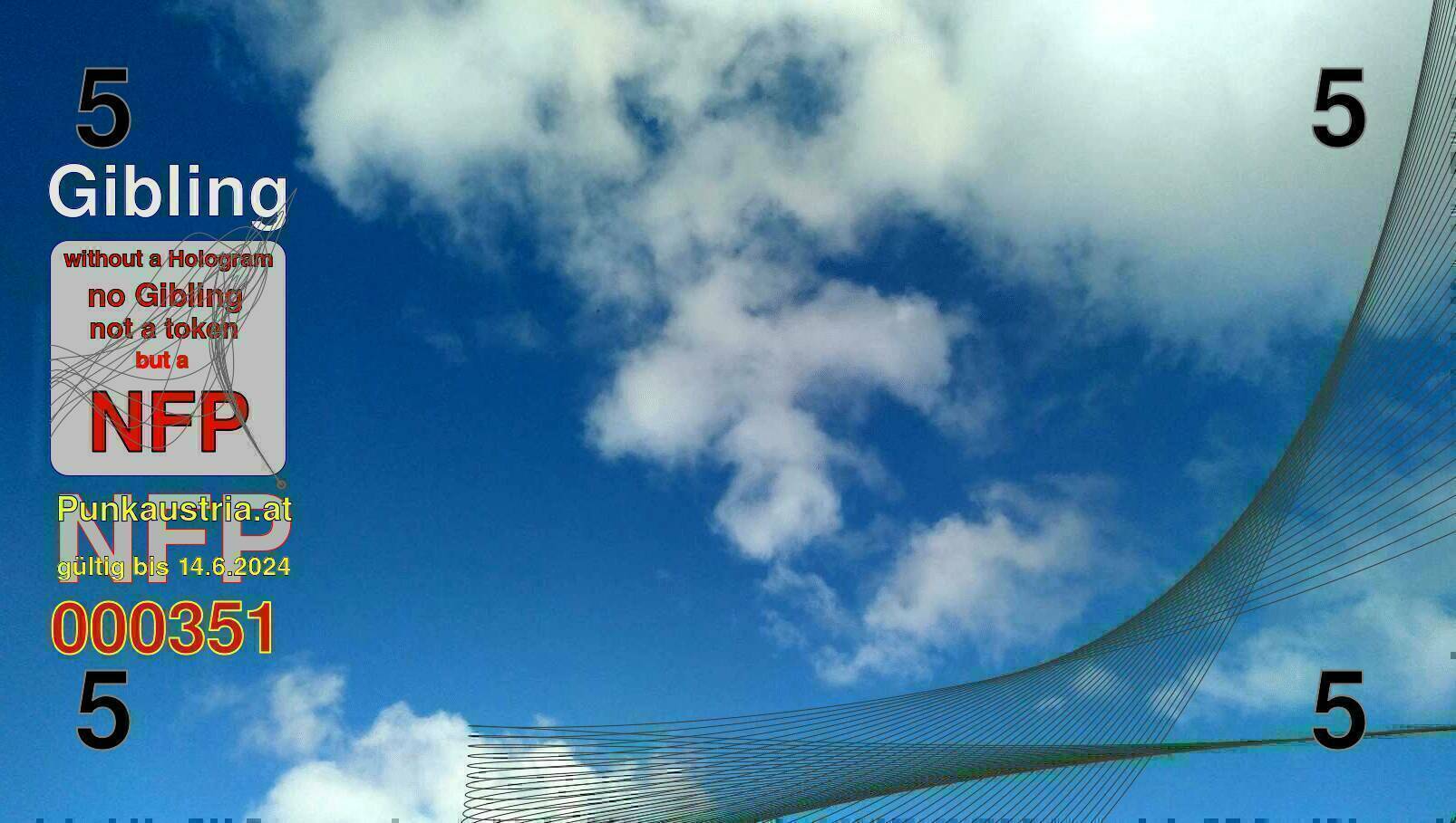| Caption-Abstract | NFP stays for "Non Fungible Picture". The 11th Edition of our community currency Gibling is built on series of unique pictures. Each image file is unique by serial number and has a own a sha256 checksum. This data is stored in the metatags of the next picture of the series. In the metatags of the first image of the series you can find this text signed in our cryptocurrency Givecoin, created in 2014; NFPs is a fork of the Givecoin blockchain. With the NFPs we extend our ECO system in the context of process art. In this way, the Infolab of the Stadtwerkstatt wants to show another critical position on the logical truths in the new digital information society. The serial number of this image is 000351 and can also be found in the metatag "Original Transmission Reference". The checksum of the previous image is 19c449c71a06d16f77145a33266773e9ee12eb76206337f0f2d9fc255c9f29ae and is also stored in the metatag: "Edit Status". Your bitcoinaddress: 15GPLjh3CBGVBqpxu22qhbtkG1XxcjYcNG. Your Givecoinaddress:Is printed on the back of the Gibling. To keep the process open, visit https://gibling.stwst.at and follow the instructions." |