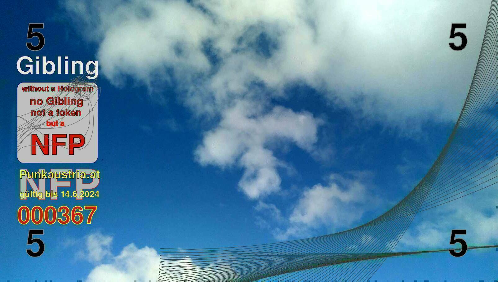 | Caption-Abstract | NFP stays for "Non Fungible Picture". The 11th Edition of our community currency Gibling is built on series of unique pictures. Each image file is unique by serial number and has a own a sha256 checksum. This data is stored in the metatags of the next picture of the series. In the metatags of the first image of the series you can find this text signed in our cryptocurrency Givecoin, created in 2014; NFPs is a fork of the Givecoin blockchain. With the NFPs we extend our ECO system in the context of process art. In this way, the Infolab of the Stadtwerkstatt wants to show another critical position on the logical truths in the new digital information society. The serial number of this image is 000367 and can also be found in the metatag "Original Transmission Reference". The checksum of the previous image is f7820ddb6c127df045fdda67c6273b552cbdb03db20514442717bca8220b2cea and is also stored in the metatag: "Edit Status". Your bitcoinaddress: 15SvP33TokJqicigR32wYMMSXGQ17FXYzu. Your Givecoinaddress:Is printed on the back of the Gibling. To keep the process open, visit https://gibling.stwst.at and follow the instructions." |