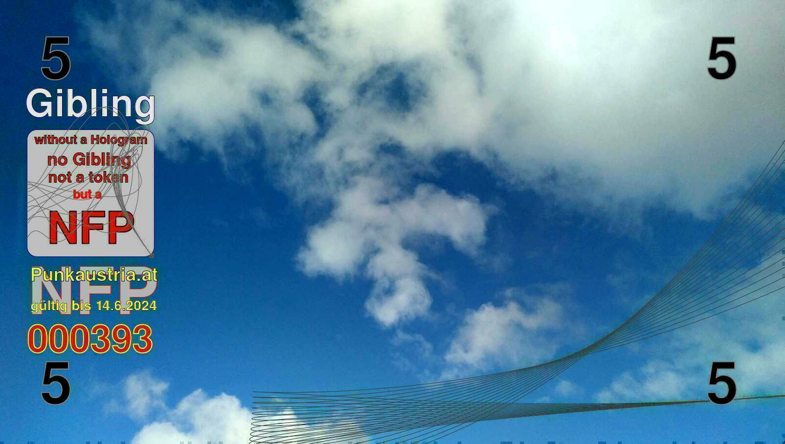 | Caption-Abstract | NFP stays for "Non Fungible Picture". The 11th Edition of our community currency Gibling is built on series of unique pictures. Each image file is unique by serial number and has a own a sha256 checksum. This data is stored in the metatags of the next picture of the series. In the metatags of the first image of the series you can find this text signed in our cryptocurrency Givecoin, created in 2014; NFPs is a fork of the Givecoin blockchain. With the NFPs we extend our ECO system in the context of process art. In this way, the Infolab of the Stadtwerkstatt wants to show another critical position on the logical truths in the new digital information society. The serial number of this image is 000393 and can also be found in the metatag "Original Transmission Reference". The checksum of the previous image is 1fbcbc057b221c929a45e9fd9a936bea04b870357b7fd3a10b5a0605d80ed661 and is also stored in the metatag: "Edit Status". Your bitcoinaddress: 15na63x52z28bN85hJ4e16Wyzh14o9YK1F. Your Givecoinaddress:Is printed on the back of the Gibling. To keep the process open, visit https://gibling.stwst.at and follow the instructions." |