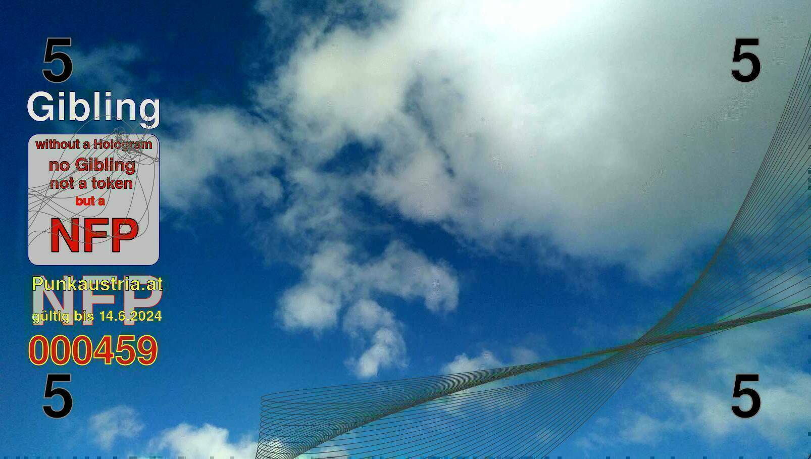 | Caption-Abstract | NFP stays for "Non Fungible Picture". The 11th Edition of our community currency Gibling is built on series of unique pictures. Each image file is unique by serial number and has a own a sha256 checksum. This data is stored in the metatags of the next picture of the series. In the metatags of the first image of the series you can find this text signed in our cryptocurrency Givecoin, created in 2014; NFPs is a fork of the Givecoin blockchain. With the NFPs we extend our ECO system in the context of process art. In this way, the Infolab of the Stadtwerkstatt wants to show another critical position on the logical truths in the new digital information society. The serial number of this image is 000459 and can also be found in the metatag "Original Transmission Reference". The checksum of the previous image is cc680b4c6403047f92fe0cef92c0643c7b5c849891f9865cbbb5048b86e10843 and is also stored in the metatag: "Edit Status". Your bitcoinaddress: 16V82iasNoXsCsDLBB7JimjZQkZs9kPpSF. Your Givecoinaddress:Is printed on the back of the Gibling. To keep the process open, visit https://gibling.stwst.at and follow the instructions." |