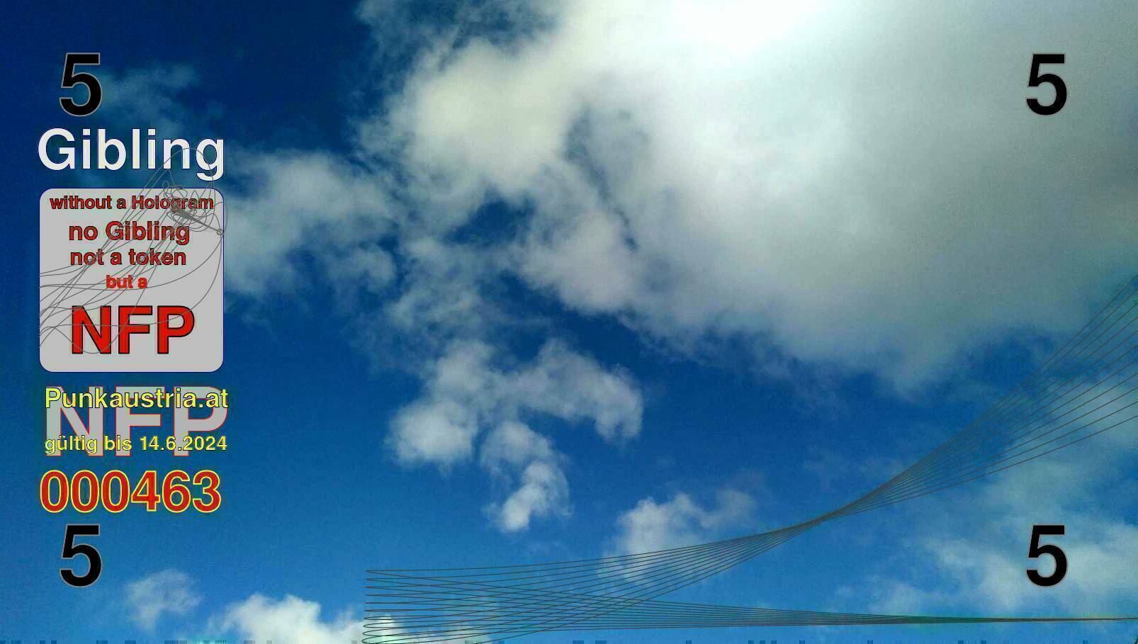 | Caption-Abstract | NFP stays for "Non Fungible Picture". The 11th Edition of our community currency Gibling is built on series of unique pictures. Each image file is unique by serial number and has a own a sha256 checksum. This data is stored in the metatags of the next picture of the series. In the metatags of the first image of the series you can find this text signed in our cryptocurrency Givecoin, created in 2014; NFPs is a fork of the Givecoin blockchain. With the NFPs we extend our ECO system in the context of process art. In this way, the Infolab of the Stadtwerkstatt wants to show another critical position on the logical truths in the new digital information society. The serial number of this image is 000463 and can also be found in the metatag "Original Transmission Reference". The checksum of the previous image is 4098d98e3e6e00cb0fdc75540ecb85a40488757d84137e74f007afcb711d877a and is also stored in the metatag: "Edit Status". Your bitcoinaddress: 16WcWxwiHtsCZAPwDScwWtsz5ukjDiiakQ. Your Givecoinaddress:Is printed on the back of the Gibling. To keep the process open, visit https://gibling.stwst.at and follow the instructions." |