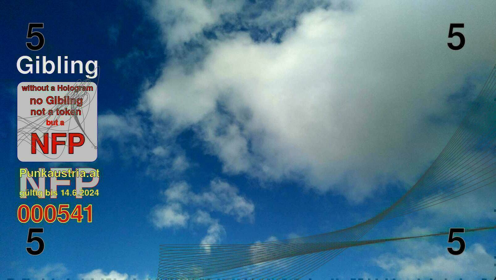 | Caption-Abstract | NFP stays for "Non Fungible Picture". The 11th Edition of our community currency Gibling is built on series of unique pictures. Each image file is unique by serial number and has a own a sha256 checksum. This data is stored in the metatags of the next picture of the series. In the metatags of the first image of the series you can find this text signed in our cryptocurrency Givecoin, created in 2014; NFPs is a fork of the Givecoin blockchain. With the NFPs we extend our ECO system in the context of process art. In this way, the Infolab of the Stadtwerkstatt wants to show another critical position on the logical truths in the new digital information society. The serial number of this image is 000541 and can also be found in the metatag "Original Transmission Reference". The checksum of the previous image is b869383dcb0a4414c1a2c5969f83f6cc7bc58d6076a421bbcfa55aafb9bb4aca and is also stored in the metatag: "Edit Status". Your bitcoinaddress: 17Ln4kF67sW413Ttk1jSmDji71iiB37gGU. Your Givecoinaddress:Is printed on the back of the Gibling. To keep the process open, visit https://gibling.stwst.at and follow the instructions." |