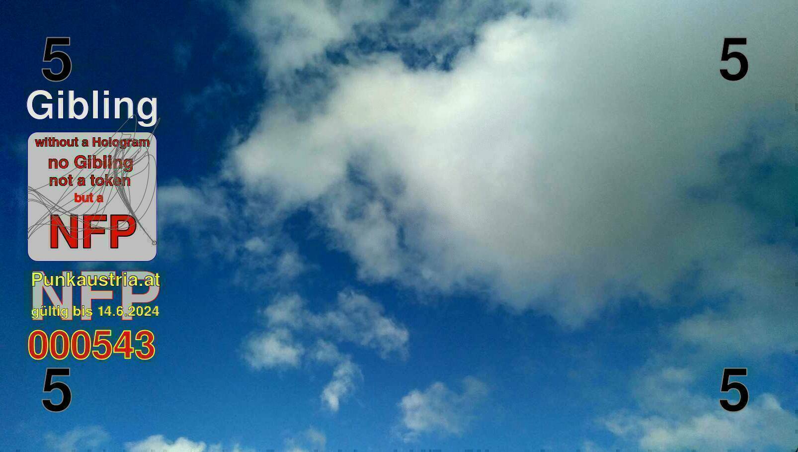 | Caption-Abstract | NFP stays for "Non Fungible Picture". The 11th Edition of our community currency Gibling is built on series of unique pictures. Each image file is unique by serial number and has a own a sha256 checksum. This data is stored in the metatags of the next picture of the series. In the metatags of the first image of the series you can find this text signed in our cryptocurrency Givecoin, created in 2014; NFPs is a fork of the Givecoin blockchain. With the NFPs we extend our ECO system in the context of process art. In this way, the Infolab of the Stadtwerkstatt wants to show another critical position on the logical truths in the new digital information society. The serial number of this image is 000543 and can also be found in the metatag "Original Transmission Reference". The checksum of the previous image is 32bc23f700530823cb542ca802ddae3fbe6ea2a8fe303c4d18078351b3ab7a22 and is also stored in the metatag: "Edit Status". Your bitcoinaddress: 17NqGjQPiLENVwRtjkhzRyJxr5KT4uER8D. Your Givecoinaddress:Is printed on the back of the Gibling. To keep the process open, visit https://gibling.stwst.at and follow the instructions." |