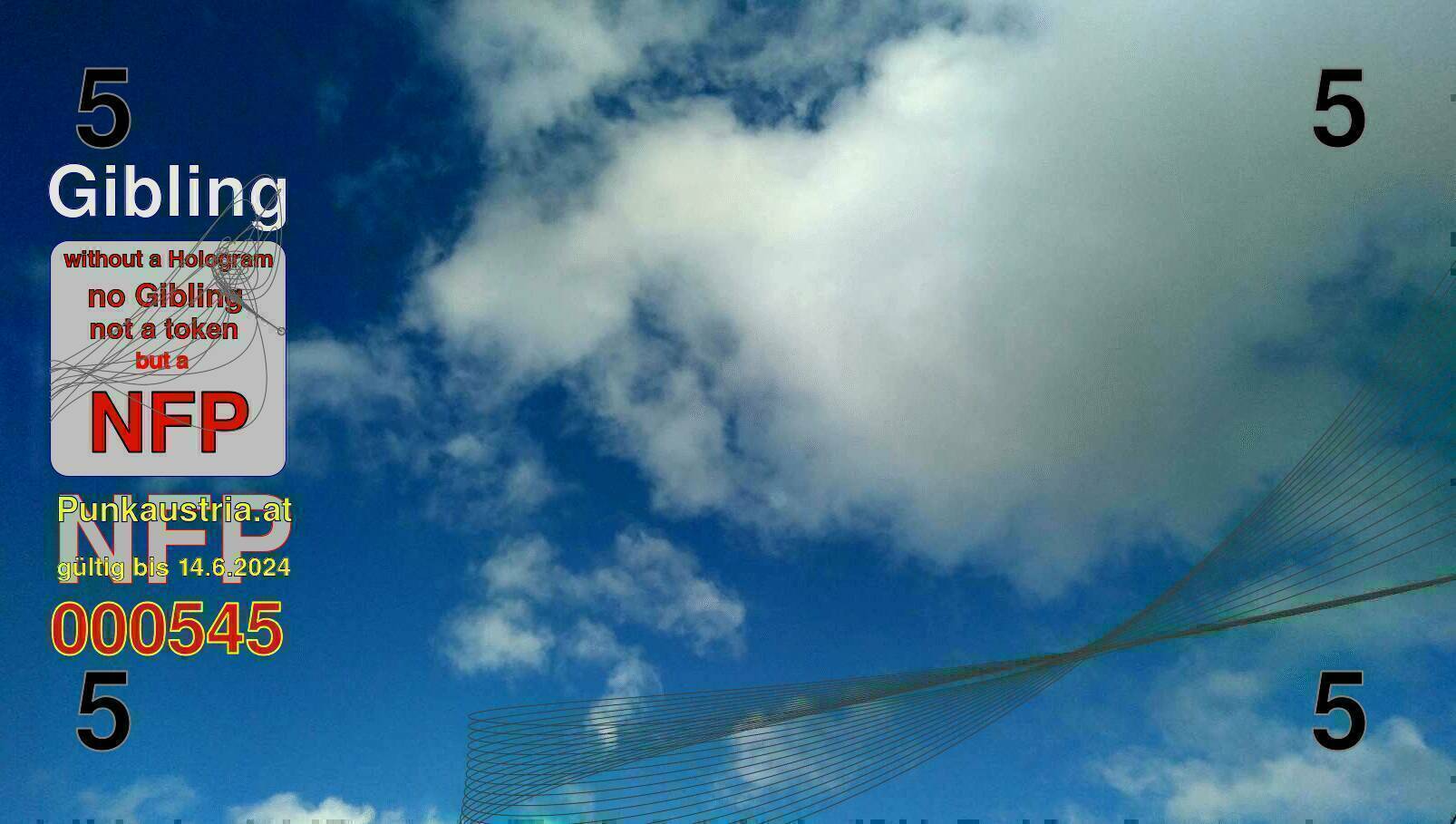 | Caption-Abstract | NFP stays for "Non Fungible Picture". The 11th Edition of our community currency Gibling is built on series of unique pictures. Each image file is unique by serial number and has a own a sha256 checksum. This data is stored in the metatags of the next picture of the series. In the metatags of the first image of the series you can find this text signed in our cryptocurrency Givecoin, created in 2014; NFPs is a fork of the Givecoin blockchain. With the NFPs we extend our ECO system in the context of process art. In this way, the Infolab of the Stadtwerkstatt wants to show another critical position on the logical truths in the new digital information society. The serial number of this image is 000545 and can also be found in the metatag "Original Transmission Reference". The checksum of the previous image is 21d9cfef8ffb7bb8a0ab7c7683d82b43b66b8c07ecdbab091b61ae6a831ebfa4 and is also stored in the metatag: "Edit Status". Your bitcoinaddress: 17PL72fbt2PFxqMZUzJmFovC8ogsrNcQno. Your Givecoinaddress:Is printed on the back of the Gibling. To keep the process open, visit https://gibling.stwst.at and follow the instructions." |