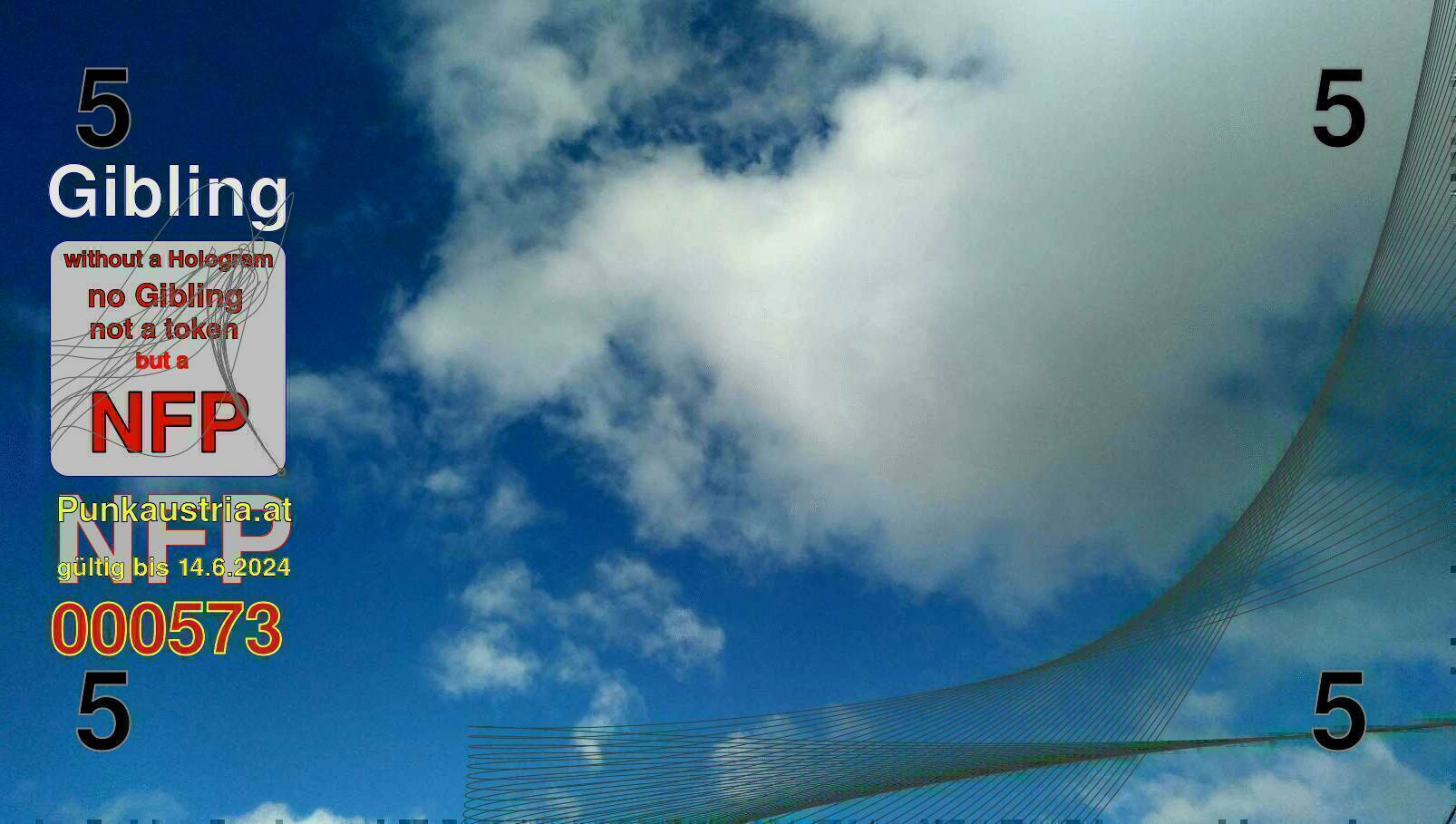 | Caption-Abstract | NFP stays for "Non Fungible Picture". The 11th Edition of our community currency Gibling is built on series of unique pictures. Each image file is unique by serial number and has a own a sha256 checksum. This data is stored in the metatags of the next picture of the series. In the metatags of the first image of the series you can find this text signed in our cryptocurrency Givecoin, created in 2014; NFPs is a fork of the Givecoin blockchain. With the NFPs we extend our ECO system in the context of process art. In this way, the Infolab of the Stadtwerkstatt wants to show another critical position on the logical truths in the new digital information society. The serial number of this image is 000573 and can also be found in the metatag "Original Transmission Reference". The checksum of the previous image is 58c6174c0ee88182450abaef3f36d022582d7a0cceebccf755564f9521fc8c4b and is also stored in the metatag: "Edit Status". Your bitcoinaddress: 17jvHY2DW9M2HdhjjUVT6pUfyBJgav7JHV. Your Givecoinaddress:Is printed on the back of the Gibling. To keep the process open, visit https://gibling.stwst.at and follow the instructions." |