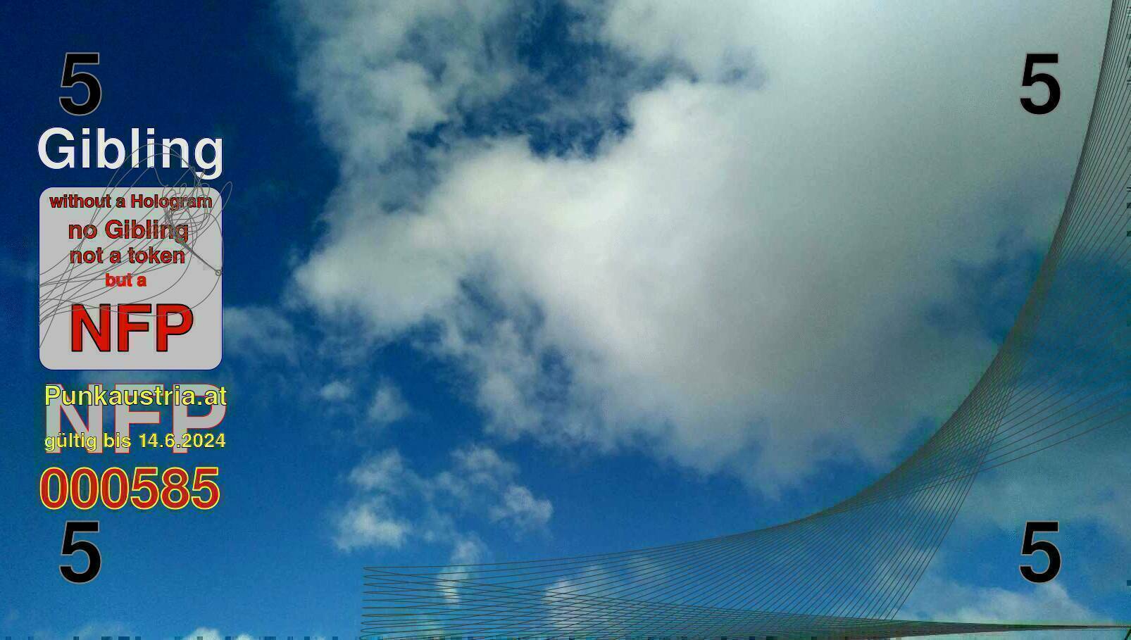 | Caption-Abstract | NFP stays for "Non Fungible Picture". The 11th Edition of our community currency Gibling is built on series of unique pictures. Each image file is unique by serial number and has a own a sha256 checksum. This data is stored in the metatags of the next picture of the series. In the metatags of the first image of the series you can find this text signed in our cryptocurrency Givecoin, created in 2014; NFPs is a fork of the Givecoin blockchain. With the NFPs we extend our ECO system in the context of process art. In this way, the Infolab of the Stadtwerkstatt wants to show another critical position on the logical truths in the new digital information society. The serial number of this image is 000585 and can also be found in the metatag "Original Transmission Reference". The checksum of the previous image is 1013c9736284d8ebce86943ea24d94d0313a0293f3d4142458615b91a4f9d27f and is also stored in the metatag: "Edit Status". Your bitcoinaddress: 17u8GzTh1FwdqXadprUzx7tnPNytr2EGrK. Your Givecoinaddress:Is printed on the back of the Gibling. To keep the process open, visit https://gibling.stwst.at and follow the instructions." |