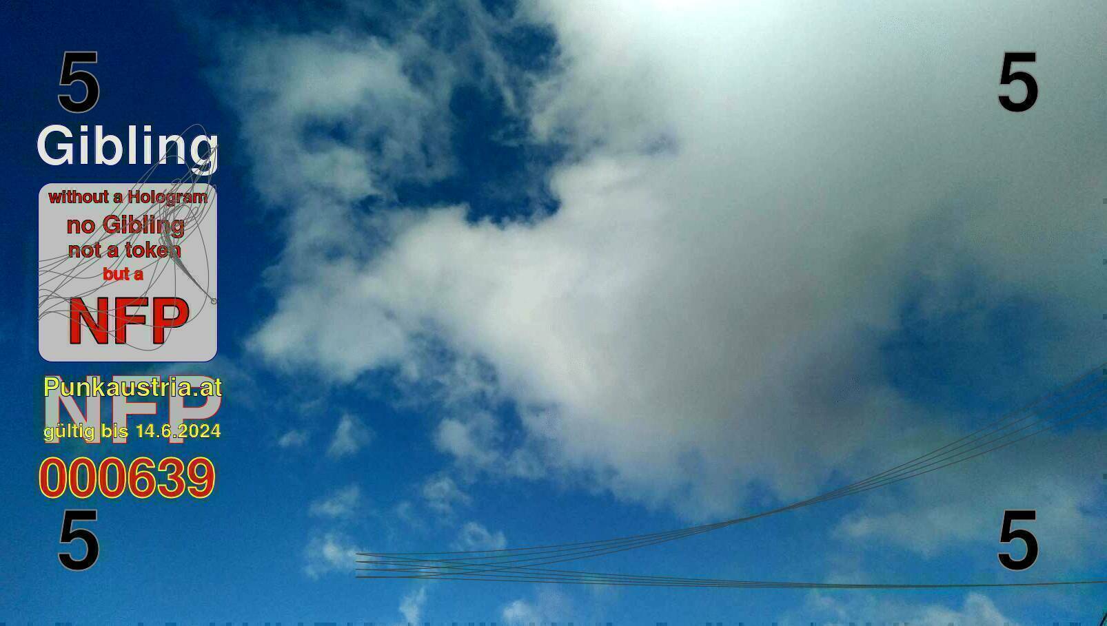| Caption-Abstract | NFP stays for "Non Fungible Picture". The 11th Edition of our community currency Gibling is built on series of unique pictures. Each image file is unique by serial number and has a own a sha256 checksum. This data is stored in the metatags of the next picture of the series. In the metatags of the first image of the series you can find this text signed in our cryptocurrency Givecoin, created in 2014; NFPs is a fork of the Givecoin blockchain. With the NFPs we extend our ECO system in the context of process art. In this way, the Infolab of the Stadtwerkstatt wants to show another critical position on the logical truths in the new digital information society. The serial number of this image is 000639 and can also be found in the metatag "Original Transmission Reference". The checksum of the previous image is 24c136efcb4122e97ecda783c5dd5862e7e9345815aa618730d4edf5265f566e and is also stored in the metatag: "Edit Status". Your bitcoinaddress: 18Qprop2sGV8AZCreLmZRdt27kAjwSGz51. Your Givecoinaddress:Is printed on the back of the Gibling. To keep the process open, visit https://gibling.stwst.at and follow the instructions." |