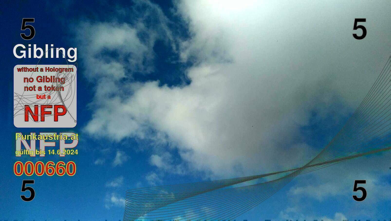 | Caption-Abstract | NFP stays for "Non Fungible Picture". The 11th Edition of our community currency Gibling is built on series of unique pictures. Each image file is unique by serial number and has a own a sha256 checksum. This data is stored in the metatags of the next picture of the series. In the metatags of the first image of the series you can find this text signed in our cryptocurrency Givecoin, created in 2014; NFPs is a fork of the Givecoin blockchain. With the NFPs we extend our ECO system in the context of process art. In this way, the Infolab of the Stadtwerkstatt wants to show another critical position on the logical truths in the new digital information society. The serial number of this image is 000660 and can also be found in the metatag "Original Transmission Reference". The checksum of the previous image is d727a190ca6b92a58b281afbb165aaebf90b167a8bb5e46df37dcb6c59caeb18 and is also stored in the metatag: "Edit Status". Your bitcoinaddress: 18chX81h9LWFupUU4pkmiDzinJB1yjiDC5. Your Givecoinaddress:Is printed on the back of the Gibling. To keep the process open, visit https://gibling.stwst.at and follow the instructions." |