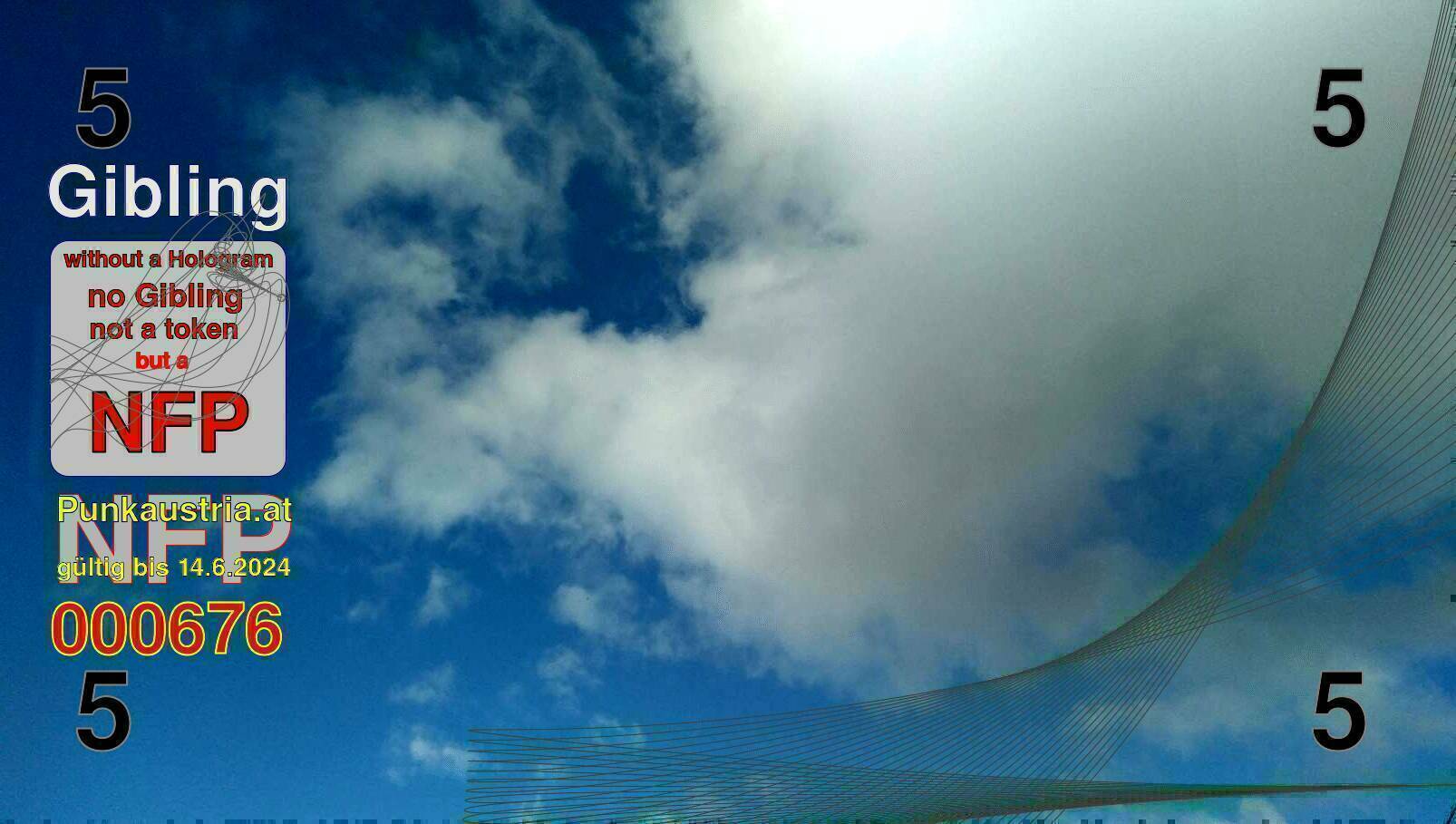 | Caption-Abstract | NFP stays for "Non Fungible Picture". The 11th Edition of our community currency Gibling is built on series of unique pictures. Each image file is unique by serial number and has a own a sha256 checksum. This data is stored in the metatags of the next picture of the series. In the metatags of the first image of the series you can find this text signed in our cryptocurrency Givecoin, created in 2014; NFPs is a fork of the Givecoin blockchain. With the NFPs we extend our ECO system in the context of process art. In this way, the Infolab of the Stadtwerkstatt wants to show another critical position on the logical truths in the new digital information society. The serial number of this image is 000676 and can also be found in the metatag "Original Transmission Reference". The checksum of the previous image is ce2ab2a93ba2a3eb5767a286c41cdb15e00e35e79f4825eebbc8f68922f57068 and is also stored in the metatag: "Edit Status". Your bitcoinaddress: 18js7keMgeaycAa8XEFDyVnnk6ceq9va4k. Your Givecoinaddress:Is printed on the back of the Gibling. To keep the process open, visit https://gibling.stwst.at and follow the instructions." |