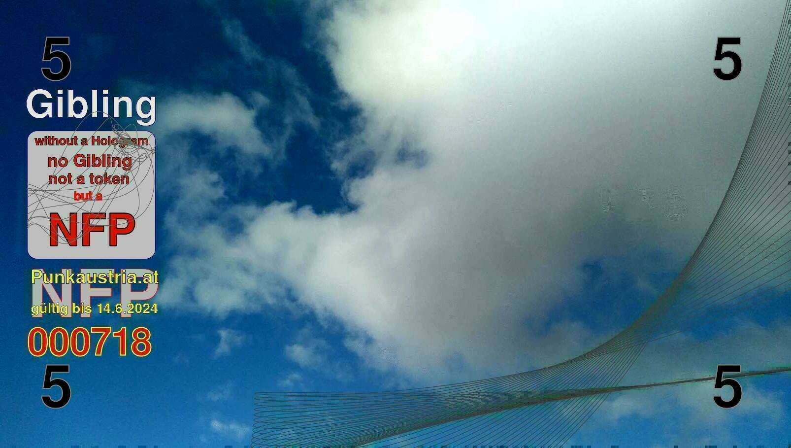 | Caption-Abstract | NFP stays for "Non Fungible Picture". The 11th Edition of our community currency Gibling is built on series of unique pictures. Each image file is unique by serial number and has a own a sha256 checksum. This data is stored in the metatags of the next picture of the series. In the metatags of the first image of the series you can find this text signed in our cryptocurrency Givecoin, created in 2014; NFPs is a fork of the Givecoin blockchain. With the NFPs we extend our ECO system in the context of process art. In this way, the Infolab of the Stadtwerkstatt wants to show another critical position on the logical truths in the new digital information society. The serial number of this image is 000718 and can also be found in the metatag "Original Transmission Reference". The checksum of the previous image is 96942ae4ded067d00dcf4cdc0f6bba36eac58382216b9ebd2ee87721b56e24d8 and is also stored in the metatag: "Edit Status". Your bitcoinaddress: 19C4DAAz1vUeks3dEiSsFCxKcuyQHFRTtn. Your Givecoinaddress:Is printed on the back of the Gibling. To keep the process open, visit https://gibling.stwst.at and follow the instructions." |