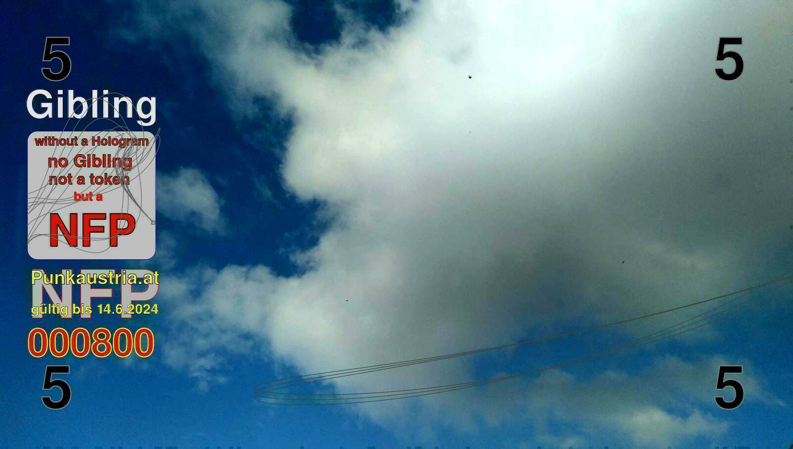 | Caption-Abstract | NFP stays for "Non Fungible Picture". The 11th Edition of our community currency Gibling is built on series of unique pictures. Each image file is unique by serial number and has a own a sha256 checksum. This data is stored in the metatags of the next picture of the series. In the metatags of the first image of the series you can find this text signed in our cryptocurrency Givecoin, created in 2014; NFPs is a fork of the Givecoin blockchain. With the NFPs we extend our ECO system in the context of process art. In this way, the Infolab of the Stadtwerkstatt wants to show another critical position on the logical truths in the new digital information society. The serial number of this image is 000800 and can also be found in the metatag "Original Transmission Reference". The checksum of the previous image is a1ad99272b62f2b92db31e81750aec118a85c882d91a19fb80a888782a8ea8d1 and is also stored in the metatag: "Edit Status". Your bitcoinaddress: 1A4hw9S4sAHPeCyFMTHNEt9igfTbZCHmXb. Your Givecoinaddress:Is printed on the back of the Gibling. To keep the process open, visit https://gibling.stwst.at and follow the instructions." |