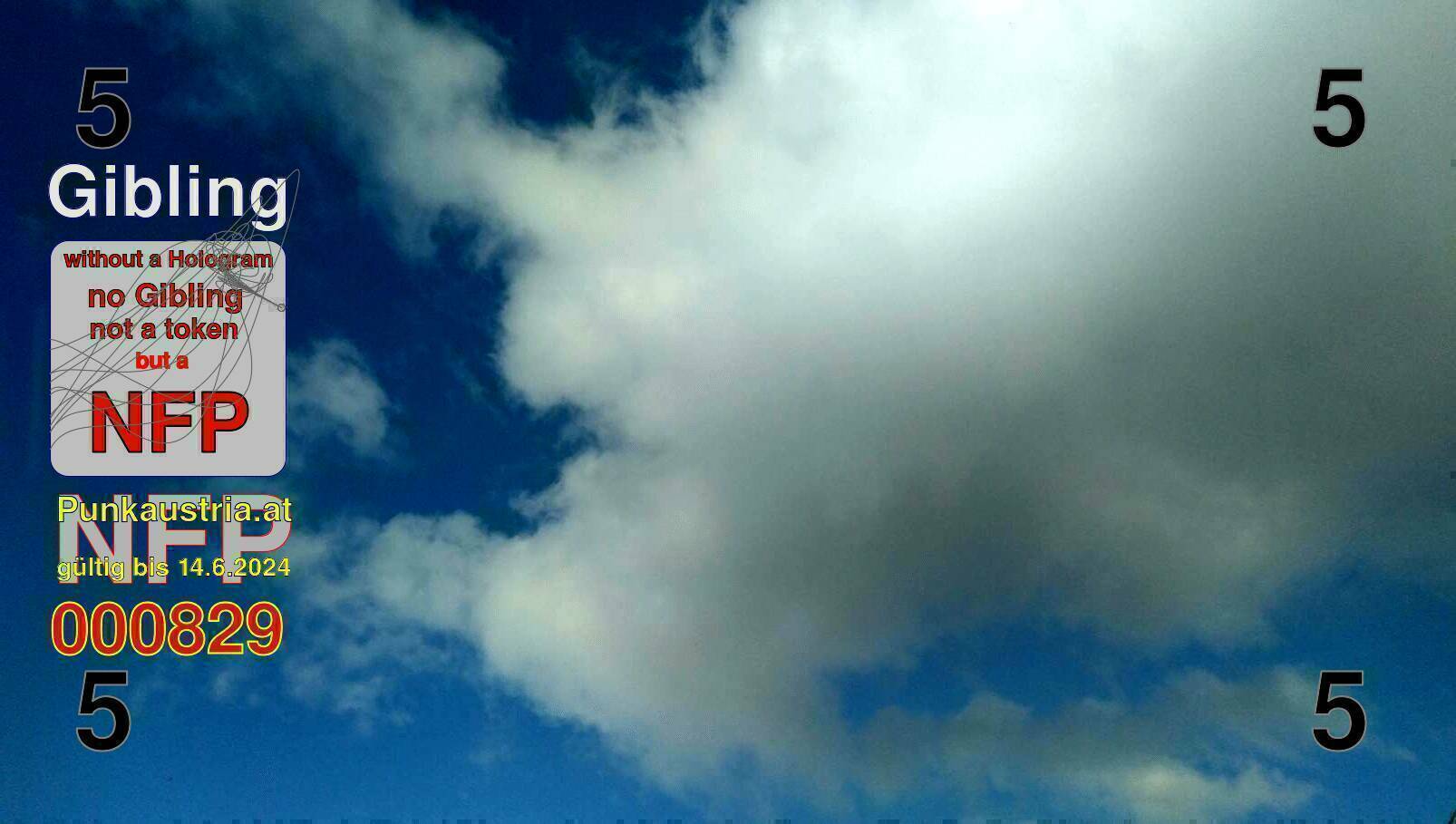 | Caption-Abstract | NFP stays for "Non Fungible Picture". The 11th Edition of our community currency Gibling is built on series of unique pictures. Each image file is unique by serial number and has a own a sha256 checksum. This data is stored in the metatags of the next picture of the series. In the metatags of the first image of the series you can find this text signed in our cryptocurrency Givecoin, created in 2014; NFPs is a fork of the Givecoin blockchain. With the NFPs we extend our ECO system in the context of process art. In this way, the Infolab of the Stadtwerkstatt wants to show another critical position on the logical truths in the new digital information society. The serial number of this image is 000829 and can also be found in the metatag "Original Transmission Reference". The checksum of the previous image is 748081550913d7b9865fcdf96fca0eb17ff362a52c99647d01629f2d3be52efd and is also stored in the metatag: "Edit Status". Your bitcoinaddress: 1ALRmc2pf1Vfg4U7zeGJGsKNh9EoCtZygE. Your Givecoinaddress:Is printed on the back of the Gibling. To keep the process open, visit https://gibling.stwst.at and follow the instructions." |