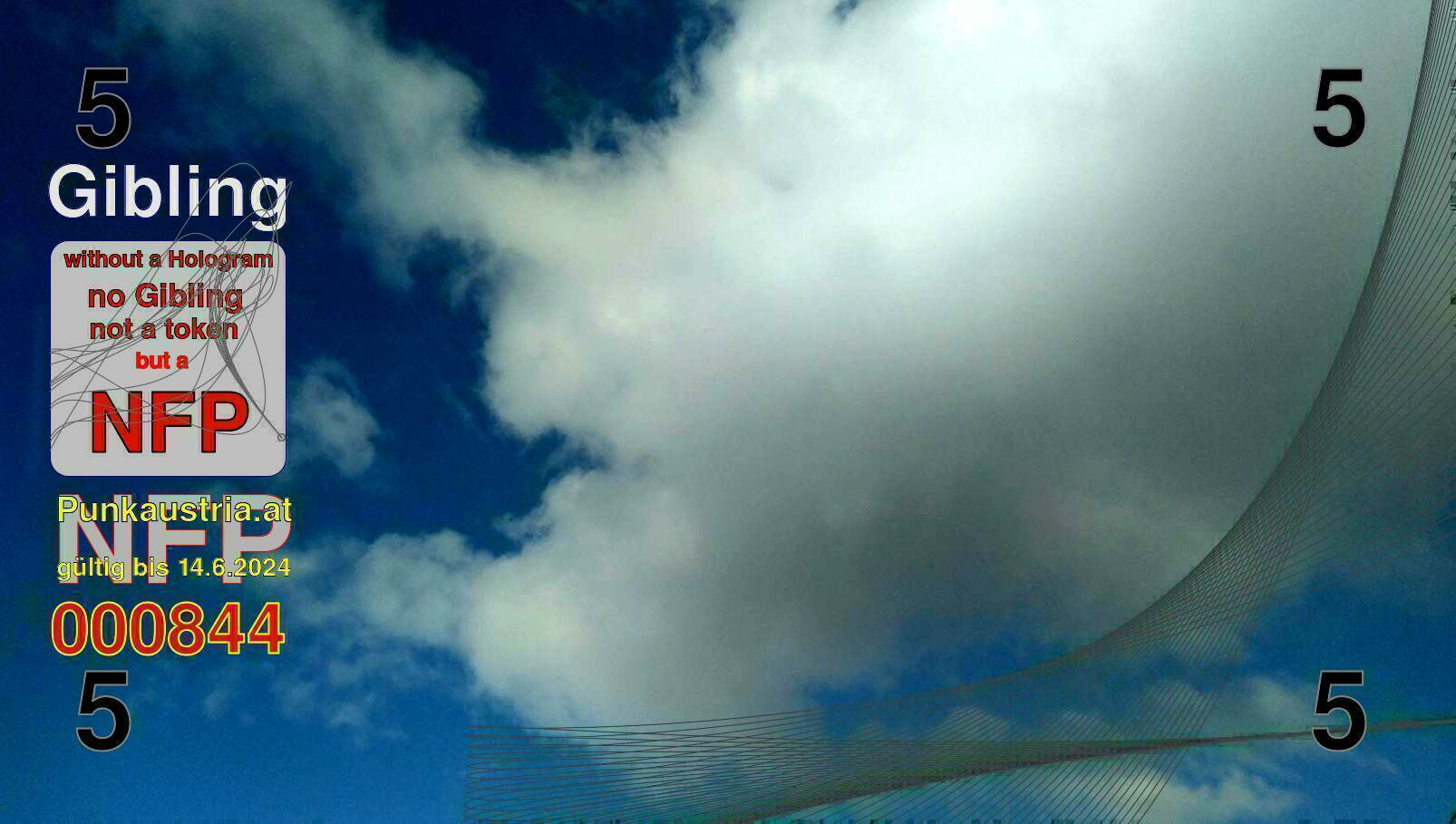 | Caption-Abstract | NFP stays for "Non Fungible Picture". The 11th Edition of our community currency Gibling is built on series of unique pictures. Each image file is unique by serial number and has a own a sha256 checksum. This data is stored in the metatags of the next picture of the series. In the metatags of the first image of the series you can find this text signed in our cryptocurrency Givecoin, created in 2014; NFPs is a fork of the Givecoin blockchain. With the NFPs we extend our ECO system in the context of process art. In this way, the Infolab of the Stadtwerkstatt wants to show another critical position on the logical truths in the new digital information society. The serial number of this image is 000844 and can also be found in the metatag "Original Transmission Reference". The checksum of the previous image is 9c20d6e382888c9f6bd6de47ba1a972939a619e1ad4b14694de6a180aab2243d and is also stored in the metatag: "Edit Status". Your bitcoinaddress: 1AUxWnUXVqQtG9DMfwknCjBoHwJwudTJGL. Your Givecoinaddress:Is printed on the back of the Gibling. To keep the process open, visit https://gibling.stwst.at and follow the instructions." |
