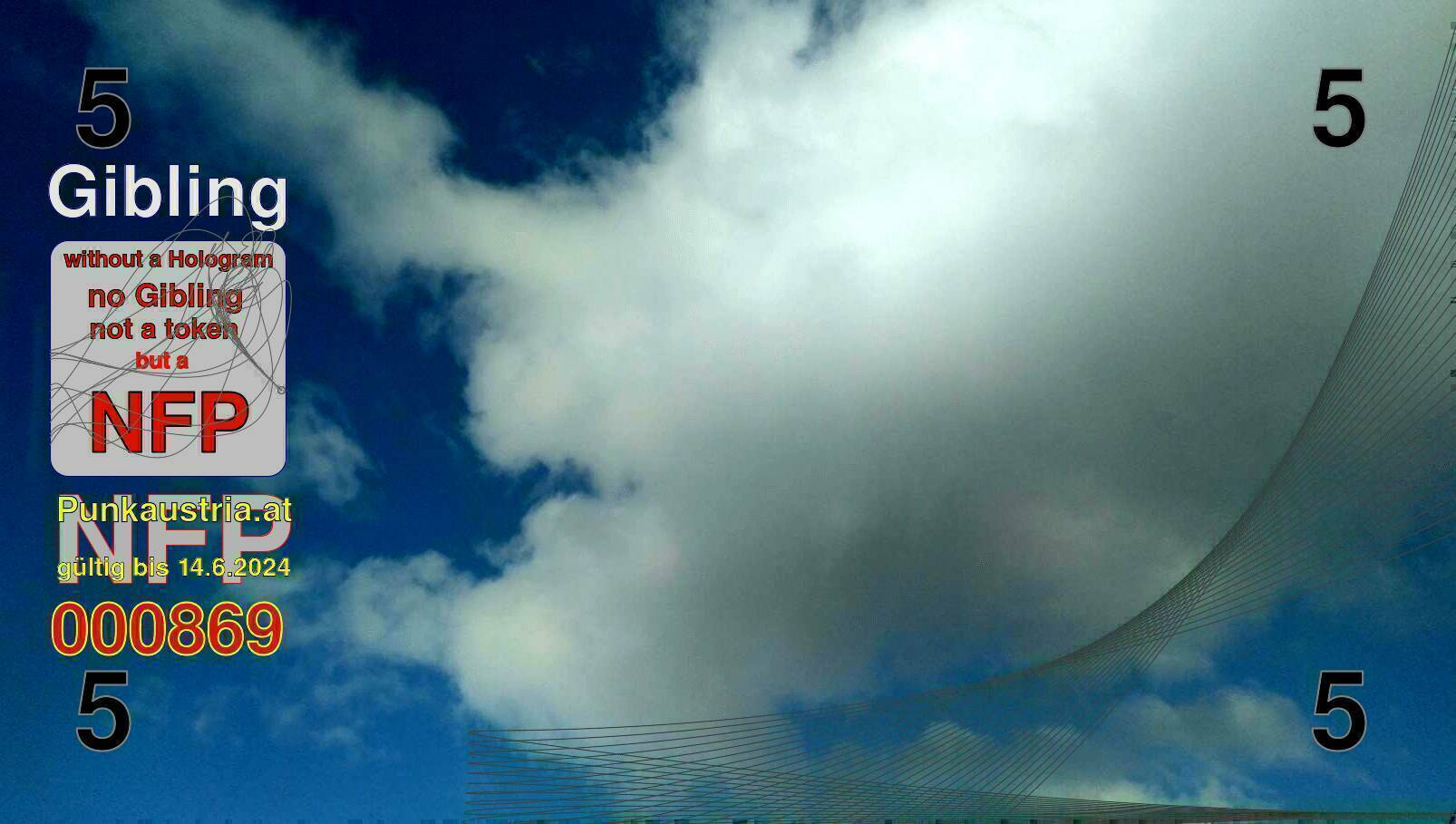 | Caption-Abstract | NFP stays for "Non Fungible Picture". The 11th Edition of our community currency Gibling is built on series of unique pictures. Each image file is unique by serial number and has a own a sha256 checksum. This data is stored in the metatags of the next picture of the series. In the metatags of the first image of the series you can find this text signed in our cryptocurrency Givecoin, created in 2014; NFPs is a fork of the Givecoin blockchain. With the NFPs we extend our ECO system in the context of process art. In this way, the Infolab of the Stadtwerkstatt wants to show another critical position on the logical truths in the new digital information society. The serial number of this image is 000869 and can also be found in the metatag "Original Transmission Reference". The checksum of the previous image is 768393558abec9a4273099d8cb864e053dca0e6c706983f9c3dfc3442869e22b and is also stored in the metatag: "Edit Status". Your bitcoinaddress: 1AjhMWzHcYtsjUWqvhL2hvhDJP8hFsZfzp. Your Givecoinaddress:Is printed on the back of the Gibling. To keep the process open, visit https://gibling.stwst.at and follow the instructions." |