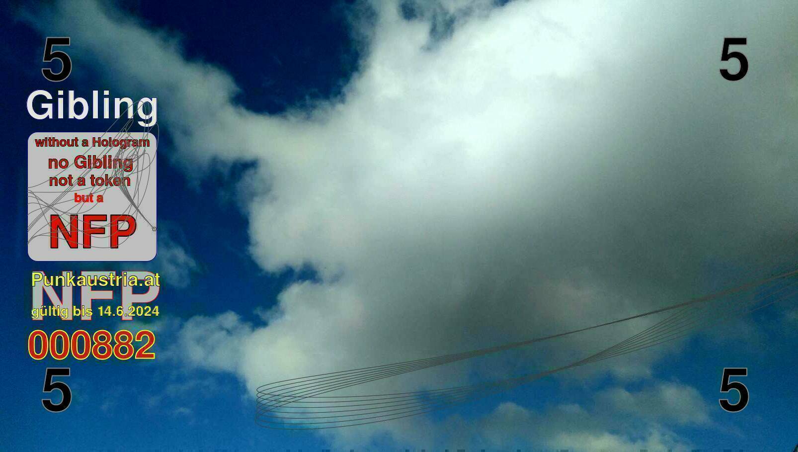 | Caption-Abstract | NFP stays for "Non Fungible Picture". The 11th Edition of our community currency Gibling is built on series of unique pictures. Each image file is unique by serial number and has a own a sha256 checksum. This data is stored in the metatags of the next picture of the series. In the metatags of the first image of the series you can find this text signed in our cryptocurrency Givecoin, created in 2014; NFPs is a fork of the Givecoin blockchain. With the NFPs we extend our ECO system in the context of process art. In this way, the Infolab of the Stadtwerkstatt wants to show another critical position on the logical truths in the new digital information society. The serial number of this image is 000882 and can also be found in the metatag "Original Transmission Reference". The checksum of the previous image is 1ba143c5659231fea77e69b276029c48d62b0c1eb91165331fd9e63829a149cb and is also stored in the metatag: "Edit Status". Your bitcoinaddress: 1ArFQqkKct91uXoTSZETrzP88tLPWQtEbj. Your Givecoinaddress:Is printed on the back of the Gibling. To keep the process open, visit https://gibling.stwst.at and follow the instructions." |