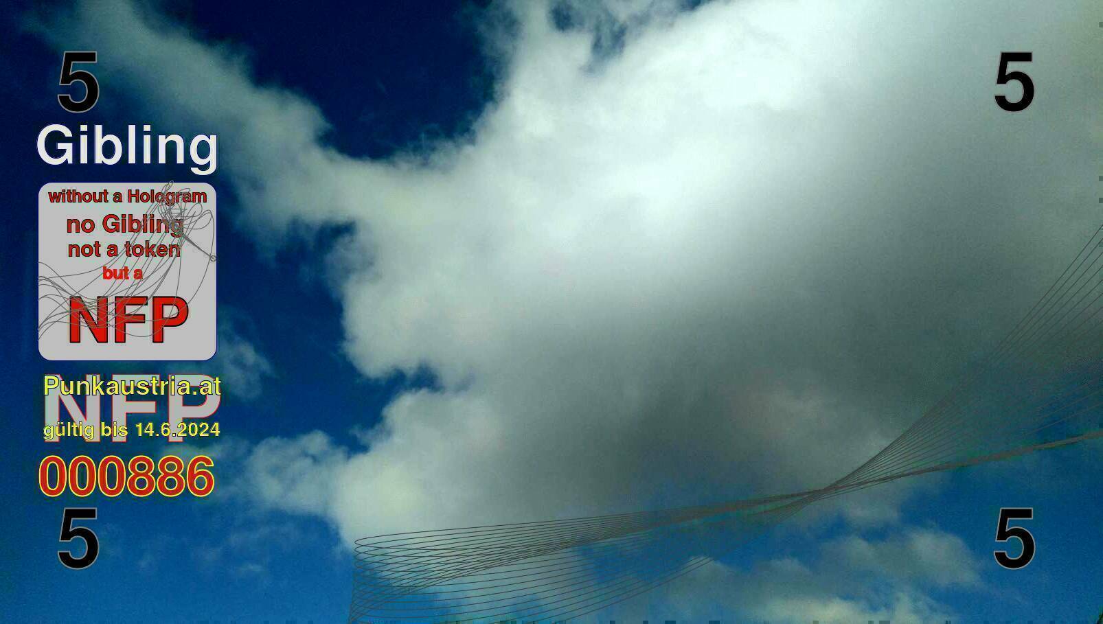 | Caption-Abstract | NFP stays for "Non Fungible Picture". The 11th Edition of our community currency Gibling is built on series of unique pictures. Each image file is unique by serial number and has a own a sha256 checksum. This data is stored in the metatags of the next picture of the series. In the metatags of the first image of the series you can find this text signed in our cryptocurrency Givecoin, created in 2014; NFPs is a fork of the Givecoin blockchain. With the NFPs we extend our ECO system in the context of process art. In this way, the Infolab of the Stadtwerkstatt wants to show another critical position on the logical truths in the new digital information society. The serial number of this image is 000886 and can also be found in the metatag "Original Transmission Reference". The checksum of the previous image is f60af394d1bbf027cd9dd5fd350d666449ccfe3105d853d36fcc75882f228ba0 and is also stored in the metatag: "Edit Status". Your bitcoinaddress: 1Aswq7t28mfi21cwyYtXc9se5oz2mytGqJ. Your Givecoinaddress:Is printed on the back of the Gibling. To keep the process open, visit https://gibling.stwst.at and follow the instructions." |