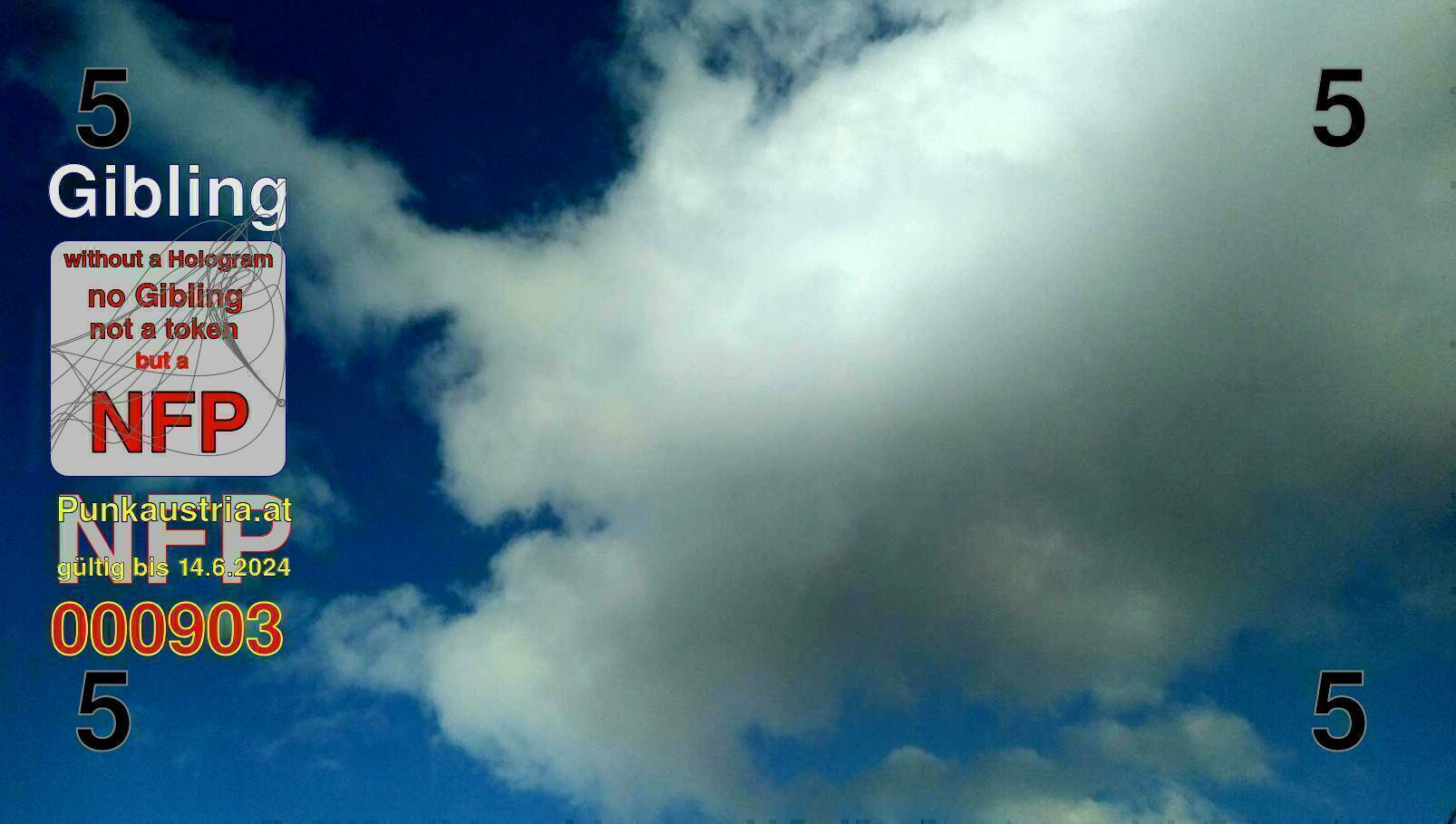 | Caption-Abstract | NFP stays for "Non Fungible Picture". The 11th Edition of our community currency Gibling is built on series of unique pictures. Each image file is unique by serial number and has a own a sha256 checksum. This data is stored in the metatags of the next picture of the series. In the metatags of the first image of the series you can find this text signed in our cryptocurrency Givecoin, created in 2014; NFPs is a fork of the Givecoin blockchain. With the NFPs we extend our ECO system in the context of process art. In this way, the Infolab of the Stadtwerkstatt wants to show another critical position on the logical truths in the new digital information society. The serial number of this image is 000903 and can also be found in the metatag "Original Transmission Reference". The checksum of the previous image is 56f3ea1dbf8adbb6cca0253219d547b665478b7a98abe17439b96ddf3c238b84 and is also stored in the metatag: "Edit Status". Your bitcoinaddress: 1B6pD9yrFobWgvsrUDvtyRMDHAp7X8SrzZ. Your Givecoinaddress:Is printed on the back of the Gibling. To keep the process open, visit https://gibling.stwst.at and follow the instructions." |