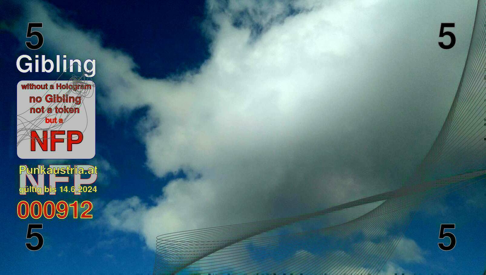 | Caption-Abstract | NFP stays for "Non Fungible Picture". The 11th Edition of our community currency Gibling is built on series of unique pictures. Each image file is unique by serial number and has a own a sha256 checksum. This data is stored in the metatags of the next picture of the series. In the metatags of the first image of the series you can find this text signed in our cryptocurrency Givecoin, created in 2014; NFPs is a fork of the Givecoin blockchain. With the NFPs we extend our ECO system in the context of process art. In this way, the Infolab of the Stadtwerkstatt wants to show another critical position on the logical truths in the new digital information society. The serial number of this image is 000912 and can also be found in the metatag "Original Transmission Reference". The checksum of the previous image is c21927e652162e598aa74dde7ce567006769e6f8a22f652b20274b35e6bc62bf and is also stored in the metatag: "Edit Status". Your bitcoinaddress: 1BBtpmif4CJVDQrpWeQ7BBHE8Ui6r4JaL7. Your Givecoinaddress:Is printed on the back of the Gibling. To keep the process open, visit https://gibling.stwst.at and follow the instructions." |