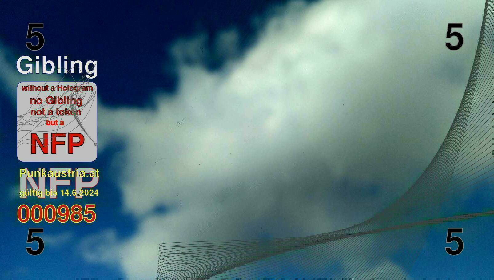 | Caption-Abstract | NFP stays for "Non Fungible Picture". The 11th Edition of our community currency Gibling is built on series of unique pictures. Each image file is unique by serial number and has a own a sha256 checksum. This data is stored in the metatags of the next picture of the series. In the metatags of the first image of the series you can find this text signed in our cryptocurrency Givecoin, created in 2014; NFPs is a fork of the Givecoin blockchain. With the NFPs we extend our ECO system in the context of process art. In this way, the Infolab of the Stadtwerkstatt wants to show another critical position on the logical truths in the new digital information society. The serial number of this image is 000985 and can also be found in the metatag "Original Transmission Reference". The checksum of the previous image is 541d7176696118ee5dbff43d5c9539d7b95321eaae4121f7802686c0bc766e7e and is also stored in the metatag: "Edit Status". Your bitcoinaddress: 1CCQy9Bg6DS1TcTkrgU24Ti4PLxfymLt2K. Your Givecoinaddress:Is printed on the back of the Gibling. To keep the process open, visit https://gibling.stwst.at and follow the instructions." |