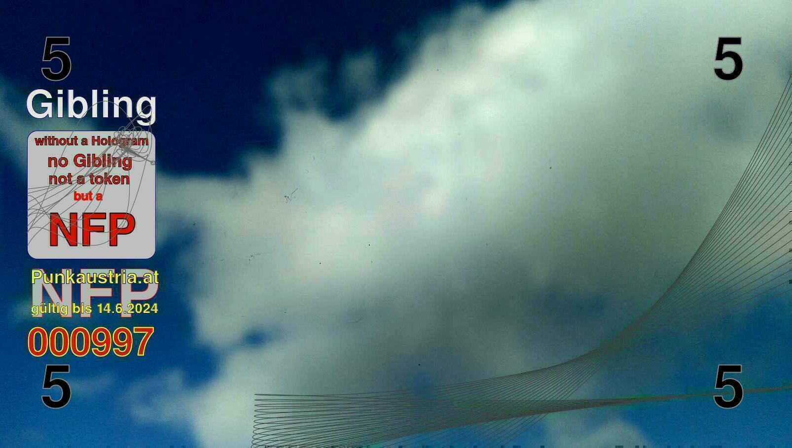 | Caption-Abstract | NFP stays for "Non Fungible Picture". The 11th Edition of our community currency Gibling is built on series of unique pictures. Each image file is unique by serial number and has a own a sha256 checksum. This data is stored in the metatags of the next picture of the series. In the metatags of the first image of the series you can find this text signed in our cryptocurrency Givecoin, created in 2014; NFPs is a fork of the Givecoin blockchain. With the NFPs we extend our ECO system in the context of process art. In this way, the Infolab of the Stadtwerkstatt wants to show another critical position on the logical truths in the new digital information society. The serial number of this image is 000997 and can also be found in the metatag "Original Transmission Reference". The checksum of the previous image is 72b860beff5dadf740e8c850c811f3ee6746ac1a49b9410a8ab44b2b2cbc01d1 and is also stored in the metatag: "Edit Status". Your bitcoinaddress: 1CHhaxypmPhQs671ne6hKwprZmLVwvPjQQ. Your Givecoinaddress:Is printed on the back of the Gibling. To keep the process open, visit https://gibling.stwst.at and follow the instructions." |